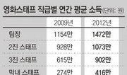 한국 영화 시장은 2011년부터 본격적으로 부흥하며 폭발적으로 성장했지만 스태프의 처우는 별반 나아지지 않았다. 흥행의 열매는 스태프에게는 ‘그림의 떡’이었다. 영화산업협력위원회에 따르면 2012년 스태프 598명을 대상으로 임금 실태를 조사한 결과 1년 평균 소득은 1107만 원으로 나타났다. 연간 수입이 500만 원 이하인 경우는 41.9%로, 5명 가운데 2명꼴이었다. 연간 소득이 100만 원이 되지 않는 사람도 16.3%나 됐다. 스태프 중에서도 분야별 막내의 처우가 가장 열악하다. 막내 스태프의 연간 소득은 416만 원. 영화 시장이 부진했던 2009년에는 274만 원을 받았다. 시장은 호황기를 맞았지만 소득은 142만 원 올랐을 뿐이었다. 2012년 수입을 월 평균 소득으로 환산하면 34만6000원으로, 그해 1인 가구 최저생계비인 55만3354원에도 훨씬 못 미쳤다. 막내 스태프 바로 위인 3진 스태프는 902만 원을, 그보다 한 단계 위인 2진 스태프는 1073만 원을 받았다. 팀장의 수입은 1472만 원으로, 2009년에 비해 318만 원 오르는 데 그쳤다. 2012년 수입을 월 소득으로 환산하면 122만 원으로, 팀장이 돼야 최저임금(95만7000원)을 가까스로 넘을 수 있었다. 가혹한 수준의 임금이지만 제때 지급되지 않는 경우도 허다했다. 응답자의 39.4%는 임금이 체불된 적이 있다고 답했다. 체불 사유는 회사 경영상의 이유(49.5%)가 가장 많았고, 고의적으로 주지 않는 경우도 19.3%나 됐다. 이유도 모르고 못 받은 경우(17.9%)도 적지 않았다. 손효림 기자 aryssong@donga.com}