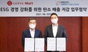 롯데마트가 2일 한국전력에너지솔루션과 온실가스 배출 저감을 위한 업무협약을 체결(사진)했다고 3일 밝혔다. 이번 업무협약을 통해 롯데마트는 전국 점포 5만5000여 개의 발광다이오드(LED)등을 초고효율 LED로 교체한다. 또 기존에 개방돼 있던 냉장 진열대에 문을 달아 에너지 사용량의 58%를 절감하고 냉장식품의 신선도를 강화한다. 이로써 연간 전기 사용량 1900만 kWh와 19억3000만 원의 비용을 절감할 수 있을 것으로 기대된다. 롯데마트 이철민 안전관리팀장은 “현재 39개 점포에서 태양광 발전설비로 전기를 생산하고 있고 연내 53개 점포로 확대할 계획”이라며 “에너지 절감을 위해 지속적으로 초고효율 설비를 매장에 적용할 것”이라고 말했다.이지윤 기자 leemail@donga.com}