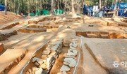 27일 오전 부산 기장군 철마면 고촌휴먼시아 아파트 입구. 산길을 따라 10분 정도 오르자 고촌리 고분군 발굴 현장이 나왔다. 해발 100m 지점의 약 150m² 부지에서 모습을 드러낸 고분군은 목곽묘(덧널무덤) 6기, 석곽묘 1기, 옹관묘(유아묘) 2기 등 총 9기다. 박정욱 부산시립박물관 학예연구사는 “이곳 고촌리 고분군은 당시 지배층의 공동묘지로 보인다”며 “바로 아래 고촌신도시 일원에서는 금관가야 주민의 삶터임을 증명하는 생활유적이 2005년까지 다수 나왔다”고 말했다. 9기의 묘에서 외절구연고배(外切口緣高杯·그릇의 입구가 바깥으로 꺾인 굽다리 접시) 등 토기 20여 점과 곡옥(曲玉·굽은 옥) 1점, 칠기류 7점 등 30여 점의 부장품이 나왔다. 모두 5세기 초인 서기 400년 전후의 유물인 것으로 조사팀은 보고 있다. 이곳에서 출토된 유물의 눈에 띄는 특징은 외절구연고배가 10여 점 나왔다는 점. 금관가야 지배자 집단의 고분에서 나오는 이 접시는 이 시기 다른 문화권에서는 거의 발견되지 않아 학계에서는 금관가야의 권역을 설정하는 중요한 지표로 삼는다. 이 접시는 철기문화를 꽃피운 금관가야의 수도 경남 김해의 대성동 고분군에서 다수 나왔고 낙동강 건너 부산에서는 강서구 미음동과 북구 화명동 고분군 등에서 출토됐다. 지금까지 부산에서 5세기 초 외절구연고배 등 금관가야의 유적이 발견된 마지노선은 동래구 복천동 고분군까지였다. 복천동에서 신라 수도였던 경주 쪽으로 직선거리 9km 떨어진 고촌리에서 금관가야를 대표하는 유적들이 이번에 새로 발굴된 것이다. 이는 낙동강 유역에 집중됐던 5세기 초 금관가야의 세력권이 부산의 가장 동쪽인 기장군까지 미치고 있었다는 것이 입증된 것으로 학계가 이번 발굴 조사의 의미를 높게 평가하는 이유다. 이현주 부산시립박물관 문화재조사실장은 “고촌리 고분군에서 지근거리인 만화리 고개를 넘어 다다르는 기장읍에서는 이단투창고배(二段透窓高杯)가 출토됐다. 이는 외절구연고배보다 조금 더 직선적인 형태의 접시로 학계는 신라시대 유물로 간주한다. 부산의 가야사 유적 경계 지점이 기장군까지 확장된 것으로 볼 수 있다”고 평가했다. 김두철 부산대박물관장(고고학과 교수)은 “금관가야는 낙동강을 놓고 김해 대성동 세력권과 부산 복천동 세력권 등으로 나뉘었다. 출토 유적 등을 미뤄 볼 때 부산지역의 최상위 지배층은 복천동에 있었으며 고촌리에는 그보다 낮은 지배층이 거주했을 것”이라며 “고촌리 고분군이 복천동의 위성고분일 것”이라고 분석했다. 고촌리 고분군이 처음 세상에 드러난 것은 1960년대다. 동래고 향토반 학생들이 주변 유물 채집 중 발견했다. 그간 육안으로 흔적을 찾는 지표조사는 수차례 이뤄졌으나 땅을 파 적극적으로 발굴에 나서는 시굴조사는 국정과제인 ‘가야문화권 조사연구사업’의 하나로 올해 7월부터 시작됐다. 허탁 부산문화지킴이 대표는 “이 일대에 얼마나 더 많은 가야사 유물이 있을지 모르는데 늑장 조사가 이뤄져 많은 유물이 도굴당한 것으로 추정된다”며 “정부와 부산시 등이 긴급하게 예산을 투입해 적극적으로 주변 발굴 조사에 나서야 한다”고 지적했다.김화영 기자 run@donga.com}