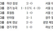 1-1이던 후반 추가 시간. 왼쪽에서 임상협이 올려준 크로스가 골문 오른쪽으로 흐르자 페널티지역 오른쪽에 있던 부산 박용호가 왼발로 받아 넣었다. 이 한 골이 부산과 성남의 운명을 바꿔 놓았다. 부산이 1일 포항 스틸야드에서 열린 포항과의 프로축구 K리그 클래식 방문 경기에서 박용호의 결승골에 힘입어 2-1로 극적인 승리를 거두고 상위 7개 팀이 겨루는 스플릿시스템 A그룹에 살아남았다. 부산은 승점 40으로 같은 시간 창원 축구센터에서 경남을 1-0으로 꺾은 성남과 동률이 됐지만 득실차(+6 대 +5)에서 1점이 앞서며 7위에 턱걸이했다. 이겨도 다득점이 필요했던 성남은 단 한 골을 넣는 데 그쳐 땅을 쳤다. 6위였던 수원은 전남과의 안방 경기에서 0-0으로 비겨 승점 41로 이날 3위 전북에 0-2로 패한 인천을 득실차에서 따돌리고 5위가 돼 역시 A그룹에 남았다. 부산과 포항의 경기는 한 편의 드라마였다. 전반 43분 터진 한지호의 선제골로 앞서던 부산은 후반 25분 골키퍼 이범영이 신광훈의 절묘한 중거리슛을 막아내는 등 포항의 파상공세에 잘 버텼다. 그러나 후반 40분 포항 김태수의 헤딩슛을 이범영이 막아내자 튀어나온 볼을 포항의 김은중이 달려들며 동점골을 뽑아냈다. 1-1 무승부면 B그룹으로 강등. 눈앞이 캄캄했던 순간 심판이 종료 휘슬을 불기 바로 직전 박용호의 결승골이 터졌다. 부산 선수들은 환호했고 이 소식을 들은 성남 선수들은 망연자실 그라운드에 쓰러졌다. 부산과 성남이 지기를 바랐던 제주는 대전을 2-1로 꺾고 승점 39가 됐지만 9위로 B그룹에 속했다. 2위 울산은 강원을 2-1로, 4위 서울은 대구를 1-0으로 각각 따돌렸다. K리그 클래식은 14개 팀이 홈 앤드 어웨이로 상위 7개 팀의 A그룹과 하위 7개 팀의 B그룹으로 나눠 다시 홈 앤드 어웨이로 최종 순위를 가린다. A그룹에선 우승팀을, B그룹에서는 강등팀을 가린다. B그룹 최하위 2개 팀이 프로 2부인 K리그 챌린지로 강등되고, 5위 팀도 K리그 챌린지 우승팀과 플레이오프에서 패하면 강등된다. 2일 올 시즌 남은 일정이 확정되면 7일부터 우승과 강등 탈피를 위한 피 말리는 싸움이 시작된다. 양종구 기자 yjongk@donga.com}