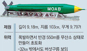 미국이 13일 아프가니스탄에 투하한 GBU-43은 핵무기를 제외하면 미군이 보유한 가장 강력한 폭탄으로 정식 명칭은 GBU-43 공중폭발대형폭탄(Massive Ordnance Air Blast)이다. 약자인 MOAB를 본떠 ‘모든 폭탄의 어머니(Mother Of All Bombs)’라는 별명으로 더 알려졌다. 이 폭탄은 미국이 2003년 이라크전쟁을 위해 개발했는데, 1991년 사담 후세인 당시 이라크 대통령이 쿠웨이트를 침공하면서 걸프전이 ‘모든 전쟁의 어머니가 될 것’이라고 말한 걸 빗댔다는 주장도 있다. GBU-43은 미군이 베트남전과 아프간전에서 쓴 BLU-82(데이티 커터)를 개량해 화력을 40% 이상 늘렸다. GBU(Guided Bomb Unit)라는 이름에서 알 수 있듯 위성위치확인시스템(GPS)을 사용하는 정교한 유도폭탄이다. 6km 상공에서 낙하돼 지상 1.8m 지점에서 TNT 11t의 파괴력으로 터지면서 암석이나 지하시설을 폭파하는 게 특징이라 벙커버스터의 여왕으로도 불린다. 다만 무게가 9.797t에 달해 제공권을 장악한 상태에서 수송기로 투하해야만 한다. GBU-43은 2003년 3월 미국 플로리다 주에서 시행된 첫 투하 실험에서 32km 밖에서도 흰 버섯구름이 보였고, 48km 밖에서도 폭발음이 들릴 만큼 강력했다. 가격은 1600만 달러(약 182억 원)로 알려졌다. 비핵무기 중에선 최고이지만 핵무기보단 파괴력이 떨어진다. 카이로=조동주 특파원 djc@donga.com}