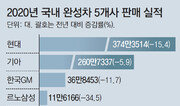 신종 코로나바이러스 감염증(코로나19) 여파로 지난해 국내 완성차 업체들의 국내외 자동차 판매가 1년 전보다 12.4% 줄어든 것으로 나타났다. 내수 판매는 늘었지만 해외 판매가 16.5% 급감하면서 전체 판매가 감소했다. 전 세계 자동차 시장에서는 매년 9000만 대 안팎이 팔렸지만 지난해에는 판매량이 7000만대 중반까지 떨어졌다는 분석이 나오고 있다. 4일 자동차 업계에 따르면 현대자동차 등 국내 완성차 5개사의 2020년 국내외 자동차 판매는 694만여 대로 집계됐다. 2019년 792만여 대에 비해 12.4%가 줄었다. 현대차는 지난해 국내외에서 2019년(442만여 대)보다 15.4% 줄어든 374만여 대를 판매했다. 기아자동차도 260만여 대를 팔면서 2019년 판매량(277만여 대)보다 5.9% 감소했다. 2019년 719만 대 이상을 판매했던 현대·기아차가 지난해에는 이보다 10% 이상 줄어든 635만여 대에 그쳤다. 한국자동차연구원에 따르면 지난해 세계 승용 자동차 시장은 2019년에 비해 17% 줄어든 7400만 대 안팎에 그칠 것으로 전망되고 있다. 코로나19 여파에 따른 소비 침체로 자동차 수요가 줄었고, 미국 유럽 등 주요 자동차 생산국에서 장기간 공장 가동이 중단되면서 공급 역시 감소했기 때문이다. 현대·기아차 외의 다른 국내 완성차 업체들 역시 수출이 크게 줄어들었다. 미국 수출 비중이 큰 한국GM은 2019년 34만755대에서 지난해 28만5499대로 수출이 16.2% 줄었다. 르노삼성자동차도 수출량이 2만여 대에 그치면서 2019년에 비해 77.5% 줄었고, 쌍용자동차도 22.3% 줄었다. 이에 따라 지난해 국내 자동차 생산량은 2019년 대비 11% 감소한 354만 대로 2009년 이후 11년 만에 최저 수준에 머물 것으로 보인다. 자동차연구원은 자동차 부품산업 고용도 2020년 6월 말 기준 2017년 말 대비 1만9233명 감소한 것으로 집계했다. 다만 완성차 5개사의 지난해 내수 판매는 160만여 대로 2019년(153만여 대) 대비 4.8% 성장해 코로나19 상황에서도 선방했다. 현대차와 기아차 판매가 6.2%씩 증가하면서 내수만 놓고 보면 나쁘지 않은 성장세를 보였다. 현대차 그랜저와 기아차 K5, 쏘렌토 등이 이끈 신차 효과가 컸고 개별소비세 인하도 힘이 됐다. 지난해 수입차 판매 역시 10% 이상 늘면서 국내 고객층의 실질 구매력은 코로나19 사태 속에서도 오히려 커졌다는 분석도 나온다. 자동차 업계에서는 올해 자동차 시장이 코로나19 악영향에서 조금씩 벗어날 것으로 조심스럽게 기대하고 있다. 시장조사업체 IHS마킷은 올해 세계 자동차 판매량을 2020년 대비 9% 증가한 8340만 대로 예측했고, 현대·기아차도 지난해보다 11.5% 늘어난 총 708만2000대를 올해 판매 목표로 4일 공시했다. 이항구 자동차연구원 연구위원은 “올해 국내 업체도 내수 판매는 소폭 줄겠지만 글로벌 시장 회복에 따라 수출이 20% 이상 늘어날 수 있을 것”이라고 밝혔다.김도형 dodo@donga.com·서형석 기자}