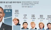 5월 9일 대선을 앞둔 한국 유권자 1000명에게 ‘대통령을 해외에서 수입할 수 있다면 누구를 원하느냐’는 질문을 던진 결과 “버락 오바마 전 미국 대통령을 청와대로 보내자”는 응답이 66.6%로 압도적인 1위를 차지했다. 동아일보가 리서치 기업 엠브레인에 의뢰해 ‘외국 지도자(정치인) 선호도’를 조사한 결과 오바마 전 대통령은 총점에서 앙겔라 메르켈 독일 총리(12.4%), 시진핑 중국 국가주석(3.4%), 도널드 트럼프 미 대통령(3.2%) 등을 크게 앞섰다. 힐러리 클린턴 전 미 국무장관, 로드리고 두테르테 필리핀 대통령, 쥐스탱 트뤼도 캐나다 총리, 블라디미르 푸틴 러시아 대통령, 아베 신조 일본 총리 등이 3% 미만의 의미 없는 득표율로 뒤를 이었다. 응답자들이 이런 선택을 한 이유는 ‘국민과 자유로운 소통’이 37.3%로 가장 많았다. 박근혜 전 대통령의 불통 정치와 국정 농단 사태에 실망한 나머지 차기 대통령에게 무엇보다 격의 없는 소통 능력을 원하고 있음을 나타낸다. ‘강력한 리더십’(18.8%)과 ‘국민 통합 능력’(12.6%)이 뒤를 이었다. 차기 대통령에게 요구되는 자질로 ‘소통과 리더십, 그리고 통합 능력’이 꼽힌 것으로 해석된다. 오바마 전 대통령은 모든 세부 항목에서도 1위를 차지했다. ‘북한의 위협 문제를 잘 해결할 것 같은 지도자’엔 35%, ‘청년실업 문제를 잘 해결할 것 같은 지도자’엔 42.6%의 응답을 얻었다. 북핵에 대해선 트럼프 대통령(15%)과 시 주석(11.1%), 청년 일자리에는 메르켈 총리(20.8%)와 트럼프 대통령(11.7%)이 뒤를 이었다. 안덕근 서울대 국제대학원 교수는 “국내 정치 상황이 힘든 만큼 소통과 포용의 정치를 보여줬던 오바마 전 대통령에게 지지가 쏠린 것 같다. 그리고 아베 총리가 정치, 경제에서 뛰어난 지도력을 보여줬음에도 낮은 지지를 받은 게 특히 눈에 띈다. 우리 국민의 (아베 총리에 대한) 인식을 그대로 보여주는 결과”라고 분석했다. 북핵 문제에 대해 김재천 서강대 국제대학원 교수는 “공개적으로 선제타격 운운하는 트럼프의 극단적인 방법보다는 대화와 압박을 병행하는 오바마의 원칙주의적 대응을 지지하는 의견이 많은 것”이라고 풀이했다. 조사는 20∼50대 성인 남녀 1000명을 대상으로 23∼26일 모바일로 실시됐으며, 표본오차는 95% 신뢰수준에서 ±3.1%포인트다. 본보는 인지도와 영향력 등을 고려해 오바마 전 대통령 등 9명의 외국 지도자를 ‘가상의 대선 후보군’으로 압축해 설문을 실시했다. 황인찬 기자 hic@donga.com}