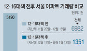 12·16부동산대책이 발표된 이후 서울 아파트 거래량이 고가 아파트를 중심으로 급격히 감소하며 대책 이전의 5분의 1 수준으로 줄어든 것으로 나타났다. 서울 재건축 아파트 가격이 17주 만에 하락세로 전환하는 등 일부 가격 안정 움직임도 나타나고 있지만 거래 급감이 중장기적으로는 시장 불안을 초래할 수 있다는 우려가 나온다. 12일 국토교통부의 실거래가 신고 시스템에 등록된 실거래 기록을 분석한 결과 계약일 기준으로 지난해 12월 17일부터 올해 1월 12일까지(27일간) 실거래 신고된 서울 아파트는 총 1315건으로 나타났다. 이는 대책 전 한 달간(지난해 11월 20일∼12월 17일) 실거래 신고 건수(6982건)에 비해 81%나 감소한 것이다. 이 같은 감소세는 고가 아파트를 중심으로 더 급격히 나타나는 것으로 확인됐다. 9억 원 이하 아파트 거래량은 5190건에서 1192건으로 77% 감소했지만 9억 원 초과 15억 원 이하 아파트는 1244건에서 116건으로 91% 감소했고, 15억 원 초과 아파트의 경우 548건에서 43건으로 감소(92%)했다. 이에 따라 9억 원 초과 아파트 거래 비중은 대책 이후 전체 거래량의 11.8%로 이전 25.7%에 비해 절반 이상 줄어들었다. 서울 송파구 잠실동의 공인중개업소 관계자는 “이 일대는 대부분 15억 원 초과 아파트로 대출 규제 직격탄을 맞았기 때문에 매수 문의가 줄어들었다”면서도 “매도자도 가격을 크게 내리지는 않는 ‘눈치 싸움’ 상태”라고 전했다. ▼ 규제 풍선효과… 9억이하, 최고가 경신 이어져 ▼12·16 대책 한달이와 함께 서울 재건축 아파트 가격은 17주 만에 감소세로 전환한 것으로 나타났다. 부동산114의 주간 아파트 매매가격 동향에 따르면 서울 재건축 아파트 가격은 1월 첫째 주(10일 기준) 전주 대비 0.03% 감소했다. 12·16대책 직전 12월 둘째 주 0.34% 상승했던 것이 셋째 주 0.31%, 넷째 주 0.29%로 상승 폭이 꾸준히 줄어들다가 감소한 것이다. 재건축 대상 아파트의 경우 가격을 낮춘 급매물들이 나오고 있다. 서초구 반포동 반포주공1단지 전용면적 84m²는 지난해 37억 원대에도 거래가 됐지만 최근 35억 원까지 가격을 낮춘 매물이 나와 있다. 하지만 급격한 거래량 감소가 시장 불안을 초래할 수 있다는 우려가 나온다. 실제로 강남권 초고가 아파트나 수도권 9억 원 이하 아파트를 중심으로 이전 최고가를 경신한 거래 사례가 일부 나타나고 있다. 서울 서초구 아크로리버파크는 지난해 12월 25일 164m² 아파트가 43억8000만 원에 거래돼 직전 실거래 가격인 11월 43억 원을 넘어섰다. 서울 강동구 강일리버파크7단지 84m²는 지난해 12월 8억 원에 거래되며 이전 최고가(7억3200만 원)를 넘어섰고, 서울 마포구 도화동의 도화현대아파트는 지난해 12월 25일 84m²가 9억 원에 거래되며 이전 최고가(7억7000만 원)를 경신했다. 일부 ‘현금 부자’들은 여전히 높은 가격에 강남권 아파트를 매수하고, 실수요자를 포함한 그 외 수요는 수도권 9억 원 이하 아파트를 중심으로 유입되며 ‘풍선 효과’를 일으키는 모양새다. 권대중 명지대 부동산학과 교수는 “서울 아파트 전체의 거래량이 급감했다는 것은 정상적인 실수요자까지 거래에 나서지 않는다는 의미”라며 “공급 축소에 대한 우려가 해소되지 않으면 중장기적으로는 가격이 더 급격히 오를 수 있다”고 지적했다. 이새샘 iamsam@donga.com·정순구 기자}