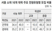 정부가 정시 확대를 요구한 서울 16개 대학은 2022학년도 입시에서 정시모집(대학수학능력시험 위주 선발)으로 1만9296명(37.6%)을 뽑는다. 수시모집의 학생부종합전형(학종·35.8%, 1만8343명)을 추월한다. 올해 치러질 2021학년도 입시는 학종(45.6%)이 정시(29.0%)보다 훨씬 비중이 크다. ○ ‘수시 이월’ 감안하면 정시 50%까지 정시모집은 예체능 계열의 일부 실기 전형을 제외하면 거의 수능 위주 전형이다. 사실상 ‘정시모집=수능’이라고 할 수 있다. 지금까지 서울 16개 대학의 수시 대 정시 비중은 7 대 3. 수시는 학종이 주축이다. 서울대의 2021학년도 학종 비율은 78.1%로 절대적이다. 2022학년도에는 16개 대학이 급격히 정시를 늘리며 수시 대 정시 비중이 6 대 4로 바뀐다. 지난해 11월 교육부가 이들 대학에 2023학년도까지 정시를 40% 이상으로 늘리라고 요구했기 때문이다. 2022학년도에 이미 9곳(건국대 고려대 동국대 서강대 서울시립대 서울여대 연세대 한국외국어대 한양대)이 정시 40%를 넘기게 됐다. 입시 전문가들은 16개 대학의 수시 이월 인원을 감안하면 실제 정시 비중이 45∼50%까지 늘어날 것으로 본다. 임성호 종로학원하늘교육 대표는 “교육부가 발표한 것은 대학의 평균 정시 비중이고, 다음 달 말 개별 대학의 발표를 보면 학과에 따라 정시 비중이 60∼70%에 달하는 곳도 있을 수 있다”고 말했다. 16개 대학의 2022학년도 학종 선발 인원은 2021학년도보다 4916명 감소한다. 그 대신 학생부교과전형(11.3%, 5795명)이 1841명 증가한다. 연세대(523명), 경희대(544명), 성균관대(361명) 등 6곳이 학생부교과전형을 신설한다.○ 수능, 내신, 비교과 두루 챙겨야 현재 고2의 경우 서울 주요 대학이 정시 비중을 늘렸다고 해서 수능에만 올인하면 안 된다. 학종 비중이 줄었다지만 여전히 정시와 비슷하고, 여기에 학생부교과전형까지 늘어난 만큼 수능과 내신, 비교과 활동을 모두 챙겨야 한다. 16개 대학이 아닌 전국 198개 대학으로 확대하면 여전히 수시(학생부교과전형 42.9%, 학종 22.9% 등 75.7%) 비중이 정시(24.3%)보다 압도적으로 높다. 이영덕 대성학력개발연구소장은 “수시는 6번까지 지원할 수 있고 충원도 여러 차례 하기 때문에 재학생에게는 놓칠 수 없는 기회”라며 “내신과 비교과를 충실히 관리하면서 수능 공부도 해야 한다”고 말했다. 내신이 약한 학생은 논술 대비도 방법이다. 16개 대학의 수시모집 논술 전형은 2021학년도 10.6%에서 2022학년도 8.7%로 줄어들지만 무시할 수 없는 규모다. 가천대, 고려대(세종), 수원대 등 적성고사 전형을 폐지하고 논술 전형을 신설하는 대학도 있다. 한편 2022학년도부터 약대가 학부제로 바뀌면서 1578명(수시 923명, 정시 655명)을 선발한다. 이만기 유웨이 교육평가연구소장은 “자연계열 상위권 학생이 약대에 지원할 가능성이 높아지면서 화공생명학과, 생명과학과, 화학과 등 기존의 약대 진학 관련 학과와 상위권 공대의 커트라인이 낮아질 수 있다”고 전망했다.최예나 기자 yena@donga.com}