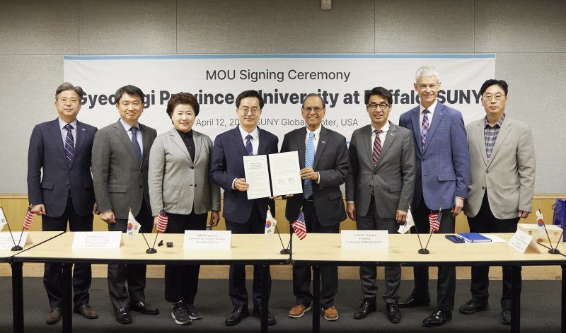 미국 명문 뉴욕주립대버팔로(State University of New York at Buffalo·UB)가 청년 기회 확대를 위해 김동연 경기도지사가 추진 중인 ‘경기청년사다리’ 프로그램에 참여하기로 했다.김 지사는 12일(현지 시각) 오전 미국 뉴욕주립대(SUNY) 글로벌센터에서 사티쉬 K. 트리파티(Satish K. Tripathi) UB 총장과 이 같은 내용을 담은 ‘경기청년사다리 프로그램 협약서’에 서명했다. UB는 해외 청년을 대상으로 한 연수프로그램을 처음 운영하게 된다.이날 협약은 이틀 전인 10일 미시간대와 첫 번째 협약을 한 데 이어 미국 방문 기간 중 경기청년사다리 프로그램의 두 번째 성과다. 협약으로 경기 청년 80명 이상이 미시간대(30명)와 UB(50명) 2곳에서 해외연수를 할 수 있게 됐다. 이 자리에는 오바마 정부의 연방 교육부 장관을 지낸 존 킹(John B. King, Jr.) 시스템 총장이 예고 없이 깜짝 방문했다. 킹 총장은 현재 뉴욕주립대(SUNY) 시스템에 소속된 UB 등 64개 대학을 총괄하고 있다. 김 지사는 킹 총장과 10여 분간 경기청년사다리 프로그램에 대한 기대와 중요성에 대해 의견을 나눴다. 경기청년사다리 프로그램은 경기도 청년을 대상으로 해외연수 프로그램을 지원해 사회적 격차 해소와 다양한 진로 개척의 기회를 제공하는 사업이다.협약에 따라 경기도는 올해부터 2025년까지 해마다 50명 이상의 경기 청년을 선발해 UB가 운영하는 프로그램에 참여시킬 예정이다. 50명은 기관별 프로그램 참여 인원 가운데 가장 큰 규모다. 올해는 빠르면 7월부터 어학, 문화 체험, 기업탐방, 팀 프로젝트 등의 수업을 4주 동안 받게 된다.김 지사는 “아주대 총장 시절 해외에 다녀온 학생들이 얼마나 많이 변화했는지 경험했다“ 며 ”올해를 시작으로 내년에는 더 많은 청년이 명문대인 UB에서 좋은 기회에 도전할 수 있도록 하겠다”고 말했다.이에 사티쉬 K. 트리파티 총장은 “경기청년사다리 프로그램이 추구하는 가치가 ‘다양성’ ‘평등’ ‘좋은 교육을 받을 권리’로 아는데, UB가 중요하게 여기는 것과 같다”며 “UB에 재학 중인 한국 학생들이 좋은 성과를 내고 있고 올해 프로그램에 참여할 경기 청년에게도 지원을 아끼지 않겠다”고 화답했다.UB는 미국 뉴욕주 버펄로(Buffalo)에 있는 주립 종합대학교다. 뉴욕주 정부가 운영하는 주립대학교 시스템(SUNY)에 소속돼 있다. SUNY에는 버펄로 외에 올버니, 빙엄턴, 스토니브룩 등 4개 종합대학이 포함돼 있다. 김 지사는 업무협약에 이어 뉴욕대(NYU)를 찾아 인공지능 분야의 대표적 석학인 얀 르쿤(Yann LeCun) 교수와 피터 홀름(Peter Holm), 카린 엘리비안스키(Karin Elibiansky) 박사와 ‘경기도-뉴욕대 간 AI 관련 협력 방안’을 논의했다.얀 르쿤(Yann LeCun) 교수는 현재 메타(Meta·옛 페이스북)의 부사장 겸 AI 센터 최고 책임자로, 인공지능과 딥러닝 분야의 세계적 석학이다. 김 지사에게 생성형 인공지능의 기술 개발 현황과 원리, 향후 미래 등을 소개하며 “지역 문제를 해결하는데 인공지능이 많은 역할을 할 수 있다”라고 말했다.김 지사는 “뉴욕대와 인적 교류, 공동 연구, 인공지능의 경기도정 적용 등 다양한 협업 기회를 갖고 싶다”며 “경기도에서 함께 토론하고 싶다”고 제안했다. 김 지사는 지난달 경기도정에 인공지능 도입을 위해 챗GPT 로드맵을 발표했다. 현재 전담 조직 출범, 도민창작단 추진, 미래 인공지능 펀드 조성 등을 진행하고 있다.이에 얀 르쿤 교수는 “좋은 제안이다. 같이 연구도 하고 인력도 교류하고 싶다”고 긍정적인 답변을 내놓았다.뉴욕=조영달 기자 dalsarang@donga.com}