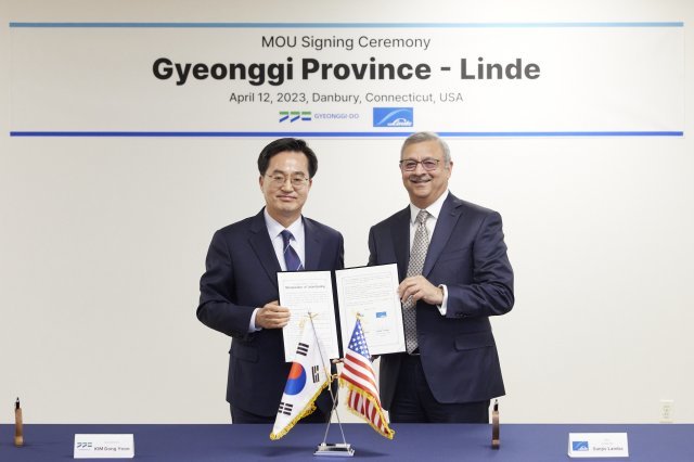 해외투자 유치를 위해 미국을 방문 중인 김동연 경기도지사가 세계 최대 산업용 가스 기업과 반도체 소재 기업의 투자를 잇달아 성공했다.김 지사는 12일(현지 시각) 오후 미국 코네티컷 댄버리 린데(Linde) 본사에서 산지브 람바(Sanjiv Lamba) 그룹 회장, 성백석 린데코리아 회장과 ‘수소차 충전용 수소 및 산업용 가스 생산’ 투자협약을 체결했다. 행사에는 남경순 경기도의회 부의장, 유대종 국제관계 대사도 함께했다.협약에 따라 린데는 약 5000억 원(3억 8000만 달러)을 투자해 버스 등 대형 수소 차량용 충전시설을 경기도에 설치할 예정이다. 반도체 공정용 산업용 가스 생산 확대도 추진한다.이번 협약은 3개월 만에 추가 투자다. 린데는 올 1월 경기도와 2031년까지 평택에 약 1500억 원 규모의 산업용 가스 생산시설을 설립하는 내용을 담은 투자협약을 맺었다. 김 지사는 “투자 규모는 물론 수소 생태계 활성화와 탄소제로에도 큰 도움이 된다는 점에서 크게 환영한다”며 “린데의 투자로 한국 반도체산업의 경쟁력이 강화될 것으로 확신한다”고 말했다.이에 산지브 람바 린데 회장은 “2035년까지 탄소집약도를 35% 감소시키겠다는 ‘3535’ 목표와 함께 2050년까지는 탄소중립을 이뤄내겠다”며 “린데는 클린에너지 분야의 글로벌 리더로서 수소 모든 주기에 대한 세계 최고의 기술력을 보유하고 있는만큼 경기도가 저탄소 미래로 나아갈 수 있도록 협력하고 지원하겠다”고 화답했다.1897년 설립된 린데는 미국 코네티컷주에 있으며 세계 최대의 산업용 가스 생산 및 엔지니어링 기업이다. 린데코리아는 1975년 설립 후 산업용 가스 부문에서만 연간 9500억 원 매출을 올리고 있다. 김 지사는 같은 날 반도체 소재 분야 종합 기업인 인테그리스의 종합연구소를 수원에 설립하는데도 합의했다. 석·박사급 고급 인력 등 약 150명 규모의 연구개발과 관련한 일자리 창출이 가능해진다.김 지사는 코네티컷 댄버리 인테그리스(Entegris) 기술센터에서 제임스 A. 오닐(Jim O‘Neill) 인테그리스 수석부회장, 이재준 수원시장과 이같은 내용을 담은 ‘반도체 소재 연구소 투자협약’을 체결했다.협약에 따라 인테그리스는 소재 개발 및 프로세스 솔루션 제공을 위한 종합연구소를 수원시에 설립할 예정이다. 인테그리스는 최근 경기도에 있는 반도체 소재 생산기업 캐봇과 반도체 및 디스플레이용 핵심 케미컬 생산기업인 ATMI사를 차례로 인수해 통합 연구 개발센터 구축이 필요한 상황이다.이번 투자는 최근 5년간 경기도가 유치한 반도체 분야 연구인력 가운데 최대 규모다. 경기도는 대한민국에서 생산되는 반도체 부가가치의 83%를 생산하는 반도체산업의 허브다. 인테그리스의 연구소가 합류함으로써 반도체 메카로서 위치를 굳히게 됐다.인테그리스는 산학협력에 관심이 많아 수원에 있는 대학 내 입주를 검토 중인데, 대학과의 공동 연구, 일자리 창출 등 다양한 분야의 협력이 기대된다. 경기도는 기업과 학교 간의 협업 프로젝트 중재 역할을 수행할 예정이다. 김 지사는 “경기도는 새로운 성장 산업을 발전시키기 위해 반도체산업과를 설치하는 등 강력한 성장정책을 추진하고 있는데 이번 투자유치가 큰 힘이 된다”며 “모든 지원을 아끼지 않겠다”고 말했다.제임스 A. 오닐 인테그리스 수석 부회장은 “인테그리스가 지역 사회의 일자리를 창출하고, 반도체 제조업에서 경쟁력을 지닌 중심지가 될 수 있도록 돕는 산업 파트너가 된다는 것이 자랑스럽다”며 “새로 설립하는 연구시설은 수원시에 있는 기존 인테그리스 기술센터와 함께 한국 반도체 분야 사업 기회 확대와 반도체 생태계 조성에 기여할 것”이라고 밝혔다.이재준 수원시장은 “인테그리스와 함께 성장할 수원시의 모습이 기대된다”며 “오늘 협약이 성공 신화에 기폭제가 될 수 있도록 행정절차를 최대한 빠르게 진행하겠다”라고 화답했다.1966년 설립된 인테그리스는 연간 40억 달러에 달하는 매출을 기록하고 있는 반도체 종합 솔루션 기업이다. 반도체, 바이오제약, 첨단산업의 핵심 소재 및 프로세스를 개발하는 데 주력하고 있다. 1990년 설립한 인테그리스코리아는 경기 평택과 화성 등에 공장을 운영하며 연간 4253억 원의 매출을 올리고 있다.김 지사는 미국 현지 시각 13일 펜실베니아와 뉴욕으로 이동하며 해외 투자유치 활동을 이어간다.코네티컷 댄버리=조영달 기자 dalsarang@donga.com}