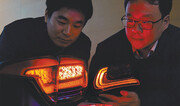 수많은 별들이 촘촘히 모여 있는 것 같기도 하고, 시뻘겋게 달아오른 숯불 같기도 했다. 불빛에 시선을 고정한 채 옆으로 조금씩 옮기자 마치 불빛이 나를 따라오는 것같이 움직였다. 불빛들은 서로 깊이감이 달라 어떤 불빛은 바로 눈앞에, 어떤 불빛은 저 멀리 있는 듯했다. 마치 ‘작은 은하계’ 같았다. 현대모비스가 세계 최초로 3차원(3D) 자동차 후미등(리어램프) 개발에 성공했다. 기존 리어램프의 수준을 한 단계 끌어올린 이 제품을 현대모비스는 19일 경기 용인시 현대모비스 기술연구소에서 동아일보에 처음 공개했다. 이 제품 개발에는 국내 한 중소기업의 기술력이 결정적이었다. 최근 세계 자동차 디자인 분야에서는 전조등과 후미등 같은 램프가 중요한 요소로 부각되고 있다. 램프는 차의 인상을 결정하는 요소이고, 특히 야간에 램프 불빛은 강한 인상을 남긴다. 최근 독일 아우디는 신차에서 여러 개의 발광다이오드(LED) 램프가 도미노처럼 순서대로 좌르륵 켜졌다 꺼졌다 하는 ‘다이내믹 턴 시그널 램프’를 선보여 주목받기도 했다. 이번에 모비스가 개발한 3D 램프는 아우디의 램프보다 높은 기술이 접목됐다. 모비스는 불빛을 평면(2D)에서 입체(3D)로 끌어올렸다. 중요한 점은 ‘평면에서 입체를 구현했다’는 것이다. 이날 눈으로 본 3D 램프는 50mm가량의 깊이감과 원근감을 구현했지만 실제 두께는 1.4mm에 불과했다. 어떻게 이런 기술이 가능했을까. 2015년으로 거슬러 올라간다. 차세대 램프 개발을 놓고 고민하던 모비스는 2015년 초 ‘3D 램프’라는 콘셉트를 고안하고 개발에 들어갔다. 기존 후미등은 모양만 조금 다를 뿐 모두 평면적인 불빛이었다. 이를 입체로 바꾸면 훨씬 다양한 디자인이 가능하고 미적(美的)으로도 아름다울 것이라고 판단했다. 램프선행설계팀 민경구 연구원(41)과 김정영 책임연구원(30)이 주목한 방식은 홀로그램, 혹은 ‘렌티큘러(반원형) 렌즈’라고 불리는 것이었다. 전자제품의 보증서 스티커, 과거 유행했던 홀로그램 책받침 등에 쓰이는 방식이다. 얇은 스티커, 책받침이 보는 각도에 따라 다양한 입체를 구현한다. 하지만 모비스는 이 분야에 기술력이 없었다. 모비스는 국내 중소기업을 수소문하기 시작했다. 일일이 업체를 접촉하고 3D 램프 콘셉트를 설명했다. 10여 곳을 접촉했지만 다들 “자신이 없다”며 손을 내저었다. 그러던 중 경기도에 있는 A사가 제안을 듣더니 “할 수 있을 것 같다”며 수락했다. 홀로그램 스티커 등을 만들던, 연 매출 400억 원 수준의 중소기업이었다. 그때부터 양사의 공동 연구가 시작됐다. 과정은 순탄치 않았다. 후미등은 불이 들어오면 내부 온도가 100도까지 올라간다. 그러다보니 애써 만든 렌즈가 녹아버리거나, 부품이 열을 이기지 못해 가스를 내뿜기도 했다. 곡면을 구현하기 위해서는 두께도 줄여야 했다. 거듭 소재를 바꾼 끝에 2.3mm였던 렌즈 두께를 1.4mm까지 줄였다. A사 대표는 “우리는 원래 스마트폰 케이스, 문구류를 만들어왔기 때문에 가혹한 고온 테스트를 해본 적이 없었다. 처음 해보는 일이었고 그만큼 실패에 대한 부담감도 컸다”고 말했다. 양사는 실패를 되풀이하며 렌즈의 화학 처리, 성분 분석, 소재 등에 노하우를 쌓아갔다. 그 결과 1년 반이 지난 2016년 말 3D 램프 개발에 성공했다. 모비스의 3D 램프는 이르면 내년 하반기(7∼12월) 현대자동차의 고급 신차에서 처음 볼 수 있을 것으로 예상된다. 모비스와 A사는 이후 시장의 반응, 해외 완성차 업체들의 주문 의뢰 등을 살핀 뒤 추가 양산이나 개발에 나설 계획이다. 모비스는 기술 유출을 우려해 아직 A사의 정체를 공개하지 않았다. A사 대표는 본보와의 e메일 인터뷰에서 “성공 여부가 불확실한 프로젝트에 뛰어들 때 고민이 많았지만 지난 10여 년간 우리가 쌓은 기술력을 믿었다”고 말했다. 그는 “중간에 실패할 때마다 ‘여기까지구나’라는 생각도 들었지만 모비스와 우리의 열정 덕분에 끝까지 올 수 있었다”고 강조했다.이은택 기자 nabi@donga.com}