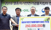 에쓰오일은 멸종위기에 처한 천연기념물 보호기금으로 환경 단체에 2억5000만 원을 후원했다고 4일 밝혔다. 에쓰오일은 이날 서울 마포구 본사에서 ‘멸종위기 천연기념물 지킴이 캠페인 발대식’을 열고 한국수달보호협회, 한국민물고기보존협회, 천연기념물곤충연구소, 한국조류보호협회, 한국두루미보호협회 등에 후원금을 전달했다. 올해로 11년째 후원이다. 후원금은 멸종위기에 처한 수달, 두루미, 어름치, 장수하늘소 등 천연기념물 4종의 보호 활동에 쓰인다. 에쓰오일은 보호종 전문단체의 연구 활동은 물론 임직원과 고객들, 대학생이 참여하는 천연기념물 보호활동을 지원하고 있다. 지금까지 4200여 명의 직원 및 고객 가족이 봉사활동에 참여했다. 신동진 기자 shine@donga.com}