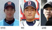 올해 고교야구 투수 최대어로 평가받는 안우진(휘문고)이 넥센에 지명됐다. 한국야구위원회(KBO)는 26일 2018 신인 드래프트 1차 우선 지명 결과를 발표했다. 올해 서울 지역 1순위 지명권을 가진 넥센은 예상대로 최고 구속 시속 156km를 자랑하는 우완 정통파 투수 안우진을 선택했다. 2순위 두산은 역시 150km의 강속구를 던지는 곽빈(배명고)을 지명했다. 3순위 LG는 안정된 제구력과 경기 운영 능력을 갖춘 덕수고 에이스 양창섭 대신 묵직한 직구가 강점인 선린인터넷고 에이스 김영준을 지명했다. 이로써 2차 지명에서 양창섭을 지명하려는 타 구단들의 경쟁이 치열할 것으로 보인다.유재영 기자 elegant@donga.com}