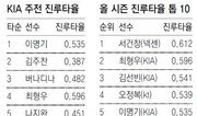 7경기 연속 두 자릿수 득점이라는 한미일 최다 기록을 세운 선두 KIA 타선의 폭발력이 뜨겁다 못해 상대 투수들을 전부 궤멸시킬 기세다. 1번부터 9번 타자까지 쉬어갈 틈 없는 지뢰밭 타선이다. 4일 현재 팀 타율(0.305)은 10개 팀 중 유일하게 3할을 넘었다. 득점권 타율도 0.342로 1위다. KIA에는 마음만 먹으면 3할을 칠 수 있는 타자들이 대거 포진했다. 하지만 타자들의 화려한 면면보다는 누상의 주자를 한 베이스 더 보내려는 치열한 노력이 폭발적인 득점력으로 연결됐다는 게 야구 전문가들의 공통된 분석이다. KBO리그 공식기록업체인 스포츠투아이에 진루 관련 기록을 의뢰한 결과, KIA 주전 타자들의 ‘진루타율(진루 성공률)’이 다른 팀 주전 타자들에 비해 높은 것으로 나타났다. 진루타율은 타석에 있는 타자가 누상의 주자가 진루할 수 있게 안타, 볼넷, 번트, 희생타 등으로 도운 비율이다. 그만큼 KIA 타자들이 주자가 있을 때는 욕심을 부리지 않고 정확한 타격으로 팀 득점 가능성을 높였다는 것이다. 3일 현재 주로 1번부터 9번까지 나서는 타자들의 진루타율이 대부분 4할을 넘는다. 보통 진루타율이 4할을 넘으면 팀 배팅에 최적화된 선수로 평가한다. 올 시즌 초반 SK에서 이적해 최근 톱타자로 나서고 있는 이명기의 진루타율은 0.535(리그 5위)다. 주자가 있는 상황을 128차례 맞이해 68번 주자를 진루시켰다. ‘공포의 9번 타자’로 상대 투수들을 괴롭히며 타격 선두(0.378)를 달리고 있는 김선빈은 0.541로 더 높다. 서건창(넥센·0.612), 최형우(KIA·0.596)에 이어 리그 3위다. 9번 타자와 1번 타자의 높은 진루타율은 자연스럽게 중심 타선의 타점 기회로 이어졌다. 득점 기회를 넘겨받은 3번 버나디나(0.482)와 4번 최형우도 무리하게 큰 것만을 노리는 스타일은 아니다. KIA 박흥식 타격코치는 “지난해까지 KIA 타자들이 타격 기량은 좋았지만 주자가 있을 때 ‘공이 들어오면 무조건 친다’며 자기 기록만 의식하는 경향이 강했다. 그래서 올해는 팀 타격을 하면서 어떻게든 앞 주자를 한 베이스 더 보내는 책임감을 가져야 한다고 선수들을 세뇌하다시피 했다”며 “올 시즌 가장 보람 있는 부분이 진루타”라고 말했다. 박 코치는 “4번을 치는 최형우에게 팀 배팅을 가장 많이 요구한 것 같다. 그러다 보니 모든 선수들이 타석에 설 때 ‘연결’의 마인드를 갖고 들어오는 것 같다”고 칭찬했다. 최형우도 “주자가 있을 때 ‘내가 앞 주자를 위해 무언가 해줘야겠구나’라는 생각을 갖고 타석에 나가게 된다”고 했다. 유재영 기자 elegant@donga.com}