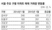 서울 동작구 상도동에서 전세를 살던 직장인 박모 씨(35)는 지난달 이 지역의 전용면적 66m² 아파트를 3억 원에 샀다. 박 씨는 2년 전 2억 원에 전세로 신혼생활을 시작했지만 계약기간이 끝나자 집주인이 월세로 돌리겠다고 했다. 박 씨는 “전세금이 2억6000만 원까지 올랐고, 전세로 나온 매물도 거의 없어서 대출을 좀 더 받더라도 집을 사는 게 맘 편하겠다고 판단했다”고 말했다. 전세금 고공행진이 지속되면서 내 집 마련에 나서는 세입자가 늘고 있다. 이 덕분인지 1월 주택 매매 거래량은 관련 통계가 집계된 2006년 이후 1월 거래량 중 가장 많았다. 11일 국토교통부에 따르면 1월 주택 매매 거래량은 7만9320건으로 지난해 1월(5만9170)보다 34.1% 늘었다. 이는 주택 시장 활황기였던 2007년 거래량(7만8794건)보다 많은 것이다. 지역별로는 수도권(32.5%)과 지방(35.3%) 모두 지난해 1월보다 증가세가 뚜렷했다. 국토부 관계자는 “지난해 9·1부동산대책 이후 주택시장 회복에 대한 기대감이 지속되고 있고 전세 수요의 매매 전환도 꾸준히 이뤄지는 것으로 보인다”고 말했다. 이와 관련해 업계는 전세난이 심화하면서 대출을 더 내서라도 내 집을 마련하겠다는 수요자가 늘어났기 때문으로 해석했다. 실제로 전세난이 극심한 서울의 경우 저가, 소형 아파트가 집중된 강북 지역을 중심으로 주택 거래량이 늘었다. 서울부동산정보광장에 따르면 강서구는 1월 아파트 매매 거래량이 지난해 1월보다 77.2% 늘었지만 강남구는 같은 기간 오히려 10.8% 줄었다. 지난해 1월 대비 25개 자치구의 아파트 거래량 증가율을 보면 재건축 이주가 본격적으로 시작된 강동구(54.5%)를 제외하면 강서구에 이어 도봉구(63.1%), 구로구(55.1%), 관악구(52.1%), 강북구(36.8%), 노원구(30.6%)에서 거래량이 크게 늘었다. 이에 비해 강남구와 송파구(1.6%), 서초구(―4.2%) 등은 지난해 1월 대비 줄거나 비슷했다. 다세대주택이나 연립주택(빌라)의 매매 거래량이 급증한 것도 전세난이 갈수록 심해지는 데 따른 현상으로 해석할 수 있다. 국토부에 따르면 1월 수도권에서 다세대·연립주택 매매 거래 건수는 7462건으로 지난해 1월보다 41.5% 늘었다. 이는 같은 기간 아파트 거래 증가율(29.4%)보다 크게 높은 수치다. 국토부 관계자는 “아파트 전세금이 너무 오르자 다세대·연립주택 전세로 눈을 돌린 수요자가 많아졌다”며 “다세대·연립주택은 전세금과 매매가격 차이가 크지 않기 때문에 전세 수요자들이 아예 매매로 돌아선 것으로 보인다”고 말했다. 지난해 말 ‘부동산 3법’이 통과된 후 거래량과 매매가격의 동반 상승을 이끈 서울 강남권은 최근 들어 거래가 다소 움츠러들었다. 이 때문에 본격적으로 부동산시장이 회복되려면 멀었다는 이야기도 나온다. 임병철 부동산114 책임연구원은 “부동산 경기 호황기에는 거래량이 늘면 매매가격이 오르고 추격 매수세가 붙는데 지금은 그렇지 않다”며 “1월 거래량 증가가 반짝 효과에 그치진 않을지 우려된다”고 말했다. 한편 한국개발연구원(KDI)은 이날 ‘2014년 4분기(10∼12월) 부동산시장 동향분석’을 내놓고 지난해 4분기 전국의 아파트 매매가 대비 전세금 비율이 70%로 사상 최고치를 기록했으며 앞으로도 전세금이 더 오를 가능성이 높다고 분석했다. KDI는 “부동산시장에서 전세금 비율이 높아진다는 것은 그만큼 집값 상승에 대한 기대가 낮아지고 있다는 뜻”이라고 설명했다.홍수영 gaea@donga.com·이상훈 기자}