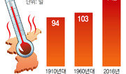 전국적으로 폭염특보가 발령된 지난주 ‘대프리카(대구+아프리카) 달걀프라이’와 ‘광프리카(광주+아프리카) 바나나’ 사진이 더위만큼 인터넷을 뜨겁게 달궜다. 대구 한 백화점이 열기가 피어오르는 아스팔트 바닥에 설치한 대형 달걀프라이 조형물과 광주 한 주택가에 열대과일 바나나가 자라는 모습을 담은 사진이었다. 누리꾼들 사이에서는 ‘이제 진짜 아열대가 된 것 아니냐’는 우려가 오갔다. 실제 우리나라가 아열대기후를 향해 한 발짝 성큼 다가선 것으로 드러났다. 전반적으로 기온이 높아지는 흐름 속에서도 겨울이 굳건히 버티고 있어 온대기후의 명맥을 유지했는데, 여름이 길어지는 만큼 겨울은 빠른 속도로 줄어들고 있는 것으로 나타났다. 25일 동아일보가 기상청의 1910∼2016년 서울 인천 대구 부산 목포 강릉 6개 시의 기온을 분석한 결과 100년 새 여름이 한 달 안팎 늘어났다. 1910년대 80∼110일 정도였던 여름의 지속일수가 2010년대(2011∼2016년)에는 110∼140일로 훌쩍 뛴 것이다. 역대 최고의 폭염이 나타났던 지난해 전국 평균 여름 일수는 133일로 1년에 ‘사흘 중 하루는 여름’이었다. 반면 겨울은 20일 이상 사라졌다. 1910년대 부산 72일, 서울 132일 등에서 2010년대 각각 61일, 110일로 반달가량 줄었다. 특히 지난해 부산의 겨울은 12월 27일 시작해 49일 만에 끝난 것으로 나타났다. 모두가 눈을 기다리는 크리스마스까지 가을이었던 셈이다. 기상청 기준의 여름은 일 평균기온이 20도 이상 오른 뒤 떨어지기까지의 기간이다. 이에 따르면 강릉의 여름은 1910년대 88일이었지만 2010년대 118일로, 대구는 108일에서 136일, 목포는 107일에서 123일, 부산은 101일에서 133일, 인천은 87일에서 119일, 서울은 94일에서 130일로 늘어났다. ▼ 바나나 자라는 ‘광프리카’… 부산은 ‘가을의 크리스마스’ ▼살인적인 더위를 보였던 지난해는 어떨까. 강릉의 여름 일수는 121일, 인천 128일, 대구 137일, 목포와 부산은 140일이었다. 서울은 무려 142일이나 됐다. 이미 아열대기후에 들었다고 평가받는 제주도(143일)와 비슷한 수준이다. ○ 5월, 봄의 여왕에서 여름의 기수(旗手)로 여름이 길어지는 것은 아무래도 예전보다 더위가 일찍 오기 때문이다. 봄의 절정을 이루며 ‘계절의 여왕’이라 불렸던 5월은 언제부터인가 ‘여름의 기수’로 전락했다. 5월 평균기온은 2014년 이후 3년 연속 최고치를 갈아 치웠고, 올해도 전국이 30도를 넘나들며 역대 가장 더운 5월 초순을 기록했다. 실제 6개 시의 여름 시작일(일 평균기온이 20도를 넘은 뒤 떨어지지 않는 첫날)은 100년 새 모두 5월로 앞당겨졌다. 1910년대 6월 4∼18일이었던 여름 시작일은 1970년대 대구(5월 25일)를 시작으로 차츰 5월로 전진해 2010년대에는 인천(6월 1일)을 제외한 5개 시가 5월에 여름을 맞이했다. 특히 지난해에는 6개 시가 모두 5월에 여름을 맞았다. 서울은 5월 16일로 5월의 절반이 여름이었다. 흔히 여름이 길어지면서 ‘끼인 계절’인 봄과 가을이 사라지고 있는 것으로 알려졌지만 이번 조사 결과 의외로 봄과 가을 기간은 크게 변화가 없는 것으로 나타났다. 기상청 기준에 따르면 일 평균기온이 5도 이상으로 올라간 후 다시 떨어지지 않는 첫날이 봄, 20도 미만으로 내려간 후 다시 올라가지 않는 첫날이 가을의 시작인데 6개 시 모두 봄가을은 열흘 안팎으로 줄거나 외려 늘기도 하는 등 들쭉날쭉했다. 반면 겨울은 큰 폭으로 줄었다. 1910년대 70∼140일에 이르렀던 겨울은 2010년대 들어 40∼110일로 쪼그라들었다. 전국 평균 겨울 일수는 1973년 129일에서 지난해 78일로 40년 새 거의 반 토막이 났다. 온난화로 겨울의 시작일(5도 미만으로 내려간 뒤 다시 올라가지 않는 첫날)이 후퇴한 것이 가장 큰 원인이다. 대구와 목포는 지난해 겨울의 시작일이 각각 12월 24일과 12월 25일이었다. 부산은 크리스마스가 지난 12월 27일이었다. 전문가들은 기후온난화가 전 세계적인 추세이긴 하지만 한반도의 기온 상승은 더 우려스러운 측면이 있다고 말한다. 김현경 기상청 기후정책과장은 “상대적으로 중·고위도가 열대지역인 저위도에 비해 기후변화 폭이 크고 우리나라같이 인구밀도와 도심 밀집비율이 높은 경우에는 변화가 더욱 크게 나타난다”고 말했다. 지난해 한반도 평균기온은 13.6도로 평년(12.5도)보다 1.1도 높았다. 기상 관측사상 유례없는 상승폭으로 꼽힌다. ○ 우려스러운 기온 상승과 생태계 변화 이에 따라 생태계에도 급격한 변화가 감지되고 있다. 가장 타격이 큰 것은 북방계 동식물이다. 겨울의 단축으로 인해 설 자리가 급격히 줄고 있다. ‘국민나무’ 소나무는 높은 기온에 더해 열대성 병해충인 재선충의 활동 영역까지 북상하면서 이중고를 겪고 있다. 재선충의 매개체 솔수염하늘소는 남방계 곤충이다. 2014년 환경부와 한국환경산업기술원의 연구에 따르면 온난화가 급속도로 진행될 경우 2071년에는 동아시아 지역 온대림의 20% 이상이 열대림으로 바뀔 수 있다. 북부 온대림에 속하는 잣나무 신갈나무 굴참나무 등 우리의 대표적인 식물들을 100년 이내에 볼 수 없게 되는 것이다. 우리 해역 표층 수온이 1968∼2015년 사이 1.11도나 오르면서 한류성인 명태는 이제 
