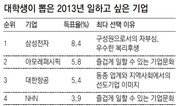 ‘돈’보다 ‘즐거움’. 대학생들이 직장을 고르는 기준에 변화의 조짐이 보이고 있다. 연봉이나 기업 규모처럼 객관적인 지표보다 자부심이나 즐거움 등 정서적인 면이 중요한 판단 요인으로 작용하고 있다. 동아일보는 취업포털 인크루트가 매년 실시하는 ‘일하고 싶은 기업’ 조사 결과를 바탕으로 대학생들의 기업 선호도 의식 변화를 살펴봤다. 인크루트는 2004년부터 130개 기업(13개 업종별 매출 상위 10개 기업)을 놓고 4년제 대학생을 대상으로 ‘일하고 싶은 기업’을 조사하고 있다. ○ 착한 직장, ‘즐거운 기업문화’가 강세 가장 눈에 띄는 것은 일하고 싶은 기업을 선택한 이유의 변화다. ‘즐겁게 일할 수 있는 기업문화’라는 답변은 2010년에는 8.8%, 2011년에는 7.3%로 각각 7위에 그쳤지만 지난해 응답률이 15.0%로 늘더니 순위가 2위로 뛰었다. 올해 조사에서도 2위를 유지했다. 휴가나 복지제도 등을 포함한 ‘우수한 복리후생’ 항목도 4, 5위에 머무르다 올해 처음으로 3위(13.0%)로 올라섰다. 1위는 ‘동종업계와 지역사회에의 선도기업 이미지’(14.1%) 항목이었다. 반면 경제적인 보상을 의미하는 ‘만족스러운 급여와 투명한 보상제도’라는 응답은 올해 5위(10.4%)로 내려앉았다. 이 항목은 2010년에는 3위(13.6%), 2011년 1위(15.9%), 2012년 3위(14.4%)였다. 선호 기업별로 살펴봤을 때도 변화 움직임이 감지된다. 삼성전자는 올해 8.4%의 대학생이 일하고 싶은 기업으로 꼽아 2009년 이후 5년 연속으로 1위에 올랐다. 하지만 삼성전자를 선택한 이유로 매번 1위를 차지했던 ‘만족스러운 급여와 투명하고 공평한 보상제도’ 항목은 올해 3위(15.9%)로 떨어졌다. 대신 ‘구성원으로서의 자부심’과 ‘우수한 복리후생’이라는 응답이 각각 23.8%로 공동 1위에 올랐다. ▼ 아모레 2위-넥슨 7위… 10위권 처음 진입 ▼지금까지 10위권 내에 한 번도 이름을 올린 적이 없었던 아모레퍼시픽과 게임업체 넥슨이 올해 처음 등장한 점도 눈에 띈다. 아모레퍼시픽은 5.8%의 지지를 얻어 2위에 올랐다. 넥슨은 3.2%로 7위를 차지했다. 두 기업을 선택한 대학생들은 ‘즐겁게 일할 수 있는 기업 문화’를 선택 이유로 가장 많이 꼽았다. 아모레퍼시픽과 넥슨은 자유롭고 수평적인 사내 문화가 좋은 인상을 준 것으로 분석된다. 아모레퍼시픽은 사내 의사소통을 강화하기 위해 ‘과장’ ‘팀장’ 같은 호칭을 없애고 ‘∼님’으로 통일했다. 넥슨도 팀 내에서 ‘형’ ‘동생’으로 서로를 부르는 등 가족적인 문화가 강하다. 직원 맞춤형 제도도 다양하다. 아모레퍼시픽은 출근시간을 오전 7∼10시에서 자유롭게 정하는 ‘ABC(Asian Beauty Creator) 워킹타임 제도’를 시행하고 있다. 넥슨은 입사한 뒤 3년이 지날 때마다 최대 20일의 리프레시 휴가를 주는 ‘3·6·9 근속휴가제’를 운영하고 있다. 권도영 넥슨 인재개발팀장은 “대학생들에게 넥슨이 ‘GWP(Great Work Place·훌륭한 일터)’라는 인식이 있어 높은 순위를 차지한 것 같다”고 말했다. 서미영 인크루트 상무는 “실제 기업 상황을 잘 모르는 대학생들이라 이미지가 주된 판단 근거가 됐을 것이다”면서 “다만 기업의 규모와 관계없이 고유의 ‘가치’를 따지기 시작했다는 점은 분명하다”고 말했다. 전문가들은 기업을 바라보는 구직자들의 시선이 점차 바뀌고 있는 것으로 보고 있다. 글로벌 헤드헌팅 기업인 러셀레이놀즈의 고준 상무는 “우리나라의 취업 시장이 선진국형으로 바뀌고 있다”고 분석했다. 고 상무는 “과거에는 직장이 먹고 사는 데 필수적인 수단이었지만 이제는 나의 행복과 발전을 이뤄주는 삶의 일부가 됐다”고 말했다.권기범 기자 kaki@donga.com}