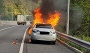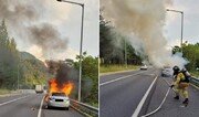 일가족이 타고 고속도로를 가던 전기 승용차에서 불이 나 차량이 모두 탔다. 16일 전북소방본부 등에 따르면 전날 오후 6시 7분경 전북 무주군 가옥리 통영대전고속도로 하행선 163km 지점 가옥터널 인근에서 전기차 SM3 ZE에 불이 났다. 당시 차량은 무주읍사무소에서 급속 충전을 한 뒤 진안 방향으로 운행 중이었다. 운전자 A 씨(40)는 “고속도로를 주행하는데 타는 냄새가 나 급하게 갓길에 차를 세우고 확인하니까 운전석 쪽 보닛에서 연기가 나고 있었다”고 신고했다. 신고를 받고 119구급대가 현장에 도착했을 당시 차량에서는 희뿌연 연기와 함께 화염이 치솟고 있었다. 불은 출동한 소방대에 의해 20분 만에 모두 꺼졌다. 차 안에는 운전자를 포함해 부인 등 일가족 3명이 타고 있었으나 연기를 보고 바로 대피해 인명 피해는 없었다. 이 불로 차량은 뼈대만 남기고 모두 타 소방서 추산 700만 원의 재산피해가 났다. 경찰과 소방당국은 운전자 A 씨의 진술을 토대로 정확한 화재 경위를 조사 중이다.무주=박영민 기자 minpress@donga.com}