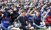 대우조선해양 인수 과정에서 현대중공업의 법인 분할을 막겠다며 임시 주주총회 장소를 3일째 점거 중인 현대중공업 노조를 위해 전국민주노동조합총연맹(민노총) 조합원들이 29일 울산 집결에 나섰다. 더불어민주당 소속 송철호 울산시장과 황세영 울산시의회 의장은 현대중공업 본사의 울산 존치를 요구하며 이날 삭발을 감행했다. 전국 노동자들의 집결과 정치권, 시민·사회단체의 가세로 ‘폭풍전야’를 맞는 울산이 극한의 대치상황으로 치닫고 있다. 민노총은 29일 16개 지역본부장 명의로 공동성명서를 내고 “현대중공업 법인분할과 대우조선 매각 정지를 위한 ‘영남권 노동자대회’에 전국적 연대를 호소한다”고 밝혔다. 현대중공업은 31일 울산 동구 한마음회관에서 주총을 열고 대우조선 인수합병 조건인 물적 분할을 결정할 예정이다. 민노총은 이를 저지하기 위해 30일 오후 5시 현대중공업 정문 앞에서 영남권 노동자대회를 열고 1박 2일 투쟁에 돌입한다. 28일부터 전면 파업에 들어간 현대중공업 노조는 “물적 분할이 본사 이전, 대규모 구조조정으로 이어져 지역 경제에 위기를 불러올 것”이라며 반대하고 있다. 민노총의 핵심 세력인 현대자동차 지부도 29일 “현대차와 현대중공업은 30년 연대투쟁의 피로 맺어진 형제 노조”라며 “적극 연대투쟁에 나서 물적 분할을 막는 데 힘을 보탤 것”이라고 지지를 선언했다. 대우조선 노조는 “현대중공업 분할이 완성되면 대우조선은 현대중공업의 하청으로 전락될 것”이라며 동반 총파업 가능성을 시사했다. 현대중공업과 현대차 노조가 속한 전국금속노조는 “모든 자원을 동원해 현대중공업 지부 투쟁에 참여한다”고 결정했다. 금속노조는 “해결 방법은 현대중공업 스스로 법인 분할을 철회하는 것”이라며 “재벌에 맞서는 투쟁, 한판 붙어보자”고 밝혔다. 울산지방법원이 주총 업무방해금지 가처분신청을 일부 인용함에 따라 31일에도 금속노조 산하 단체가 주총장 점거를 이어가면 불법행위 한 건당 5000만 원을 사측에 내야 한다. 민노총은 30일 비정규직의 정규직화를 주장하며 7월 공공부문 총파업 선언 기자회견을 열 예정이다. 반면 한국경영자총협회는 29일 성명서를 내고 “기업결합이라는 경영 사안에 대해 노조가 파업하는 것 자체가 법 위반”이라고 비판했다.박은서 clue@donga.com·지민구 기자}