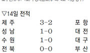 포항의 상승세도 수원의 ‘안방 기운’ 앞에서는 역부족이었다. 수원이 11일 포항과의 안방 경기에서 승리하면서 안방 불패 행진을 이어갔다. 최근 수원과 포항의 팀 분위기는 대조적이었다. 수원은 올 시즌 개막 후 3연승을 달리며 신바람을 냈지만 이후 3경기에서 1승 1무 1패로 다소 주춤한 상태였다. 반면 포항은 개막 후 3경기를 치르는 동안 2무 1패로 승리를 챙기지 못하다 최근 3경기 연속 승리를 거두며 상승세를 탔다. 이 때문에 이날 경기는 기세가 오른 포항이 수원의 안방 불패를 저지할 수 있을지가 관심거리였다. 하지만 포항의 물오른 기세도 수원성을 무너뜨리진 못했다. 수원은 전반 15분에 터진 라돈치치의 선제 결승골과 후반 37분 이용래의 추가 골로 2-0 승리를 거두며 이번 시즌 안방에서 열린 4경기를 모두 무실점 승리로 장식했다. 두 골 모두 스테보가 어시스트다. 수원은 지난해 6월 18일 대구전부터 이어온 안방 경기 무패 기록을 17경기(15승 2무)로 늘렸다. 5승 1무 1패로 승점 16이 된 수원은 전날 2위에서 단독 선두가 됐다. 골 결정력에서 수원이 앞선 경기였다. 슈팅 수는 두 팀이 14 대 14로 같았고, 볼 점유율에서는 오히려 수원이 47 대 53으로 약간 밀렸다. 그러나 수원은 골문을 향한 유효 슈팅 5개 중 2개가 골네트를 흔들었다. 포항은 유효 슈팅 6개를 기록했지만 득점으로 연결하지는 못했다. 윤성효 수원 감독은 “이기긴 했지만 전체적인 경기력은 5 대 5였다. 골 결정력에서 우리가 조금 앞섰다”고 말했다. 포항은 후반 10분 김진용이 페널티지역 안에서 상대 골키퍼와 1 대 1로 맞서 동점골의 기회를 잡았지만 이를 살리지 못한 게 아쉬웠다. 황선홍 포항 감독은 “첫 골을 너무 빨리 내주는 바람에 끌려다니는 경기를 한 것이 패인이다”고 했다. 개막전부터 6연패의 수렁에 빠졌던 최하위 대전은 상주시민운동장에서 상주를 2-1로 꺾고 시즌 첫 승을 신고하면서 승점 3을 챙겼다. 대전은 전반 10분 김창훈, 전반 42분 터진 바바의 골로 승리했다. 전북은 강릉종합운동장에서 열린 방문경기에서 후반 24분 터진 루이스의 골로 강원을 1-0으로 이겼다. 수원=이종석 기자 wing@donga.com}
