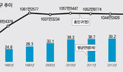 서울 인구가 감소하는 추세로 평균 연령은 높아지면서 빠르게 고령사회로 진입하고 있는 것으로 나타났다. 서울시가 19일 발표한 ‘서울통계연보’에 따르면 지난해 서울인구는 1039만 명으로 2010년 1057만 명으로 최고를 기록한 뒤 3년간 계속 줄고 있다. 65세 이상 노인 인구는 116만7000명으로 서울 인구의 11.2%를 차지했다. 보통 전체 인구 대비 65세 이상 노인 인구가 14%를 넘어서면 ‘고령사회’로 정의한다. 1970년대 22.8세였던 서울시민 평균연령은 2000년에는 33.1세로 처음 30세를 넘어섰고 지난해에는 39.7세로 껑충 뛰었다. 이런 속도라면 올해 말이면 서울 평균 연령이 40세를 돌파할 것으로 보인다. 평균 연령이 10.3세 오르는 데 30년(1970년→2000년)이 걸린 것에 비하면 고령화가 매우 가파르게 진행되고 있음을 알 수 있다. 저출산도 심각하다. 하루 동안 태어나는 아이는 230명으로 30년간 절반 가까이 줄었다. 1970년대 유소년(0∼14세) 인구가 전체 인구에서 차지하는 비중은 36%로 노인 인구(1.8%)의 20배였다. 그러나 1990년대 22.6%, 2000년대 18.6%로 급격히 줄었고 지난해는 12.5%로 노인 인구(11.2%)와 비슷한 수준으로 내려앉았다. 서울시 인구구조는 유소년층이 적고 청장년층은 많은 ‘항아리 형태’를 보이고 있다. 한편 소비자물가지수는 2010년을 100으로 봤을 때 지난해 107.88이었다. 20년 전(54.621)에 비해 2배 가까이로 올랐다. 하수도 요금이 9.3배로 가장 많이 올랐고 △경유(9배) △등유(6.4배) △간장(5.9배) △비스킷(5.8배) △상수도료(5.3배) 순이었다.우경임 기자 woohaha@donga.com}