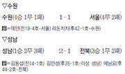 ‘수원과 서울이 만나면 스토리가 있다.’ 14일 수원월드컵경기장엔 경기 시작 3시간 전부터 파란색 유니폼과 붉은색 유니폼을 입은 팬들이 몰려들었다. 2시간 전부터 입장이 가능하지만 마치 국가대표팀 경기를 보러 오듯 뜨거운 열기가 느껴졌다. 대한민국을 대표하는 프로축구 수원 삼성과 FC 서울의 시즌 첫 맞대결을 3만7879명이 지켜봤다. 최근 상대전적 7승 1무의 수원, 수원 전 8경기 연속 무승의 서울, 1990년대를 풍미했던 국가대표 출신 서정원 수원 감독과 최용수 서울 감독의 첫 사령탑 대결, 한국 축구대표팀 수비수 출신 차두리와 북한 대표팀 공격수로 활약하고 있는 재일교포 수원 정대세의 첫 K리그 클래식 맞대결…. 서 감독과 서울은 악연도 있다. 1992년 서울의 전신인 안양 LG에서 프로 생활을 시작한 서 감독은 1999년 유럽에서의 선수 생활을 마치고 국내로 복귀하면서 친정팀 안양이 아닌 수원과 계약해 안양 팬들로부터 비난을 받았다. 또 서울로 간 LG에 배신당한 안양 팬들은 수원으로 결집해 ‘타도 서울’을 외치고 있다. 이처럼 서울과 수원의 맞대결엔 팬들의 이목을 집중시킬 얘깃거리가 넘쳤다. 수원은 ‘돌아온 피겨여왕’ 김연아를 초청해 시축과 친필 사인볼을 던져주는 하프타임 행사도 마련해 팬들의 관심도를 높였다. 이날 경기에서 수원은 서울에 ‘9경기 연속 무승 징크스’란 멍에를 씌우는 새로운 스토리를 팬들에게 전했다. 수원은 전반 19분 서울의 몬테네그로 특급 데얀에게 선제골을 내줬지만 후반 42분 역시 몬테네그로 출신 라돈치치가 동점골을 뽑아 1-1 무승부를 만들었다. 수원은 이날 무승부로 최근 상대 전적 7승 2무의 절대 우세를 이어갔다. 수원은 승점 13(4승 1무 1패)으로 1위를 지켰다. 서울은 시즌 4무 2패로 부진하며 승점 4로 12위. 수원 정대세는 지나친 투지로 퇴장을 당했다. 경기 시작 후 얼마 안 돼 상대 수비수를 거칠게 태클해 경고를 받은 정대세는 전반 39분 공을 잡은 서울 골키퍼 유상훈을 뒤에서 태클해 경고 2개로 레드카드를 받았다. 한편 성남 일화는 전북 현대를 홈으로 불러 들여 2-1로 꺾고 2무 3패 끝에 시즌 첫 승을 거뒀다.수원=양종구 기자 yjongk@donga.com}