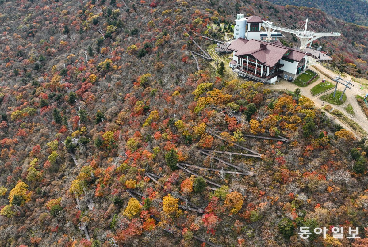 13일 강원 평창군 발왕산이 울긋불긋 단풍으로 곱게 물들었다. 본격적인 가을 단풍철이 시작된 첫 주말인 14일 천둥 번개와 우박을 동반한 요란한 비가 예보됐다. 이날 기압골의 영향으로 서울 등 수도권과 강원 영서, 충청, 전라 지방에 5∼40mm, 강원 영동과 경상 지방에 5∼20mm의 비가 내리고 대기 불안정으로 5mm 이상의 우박도 내릴 수 있겠다. 평창=이한결 기자 always@donga.com}