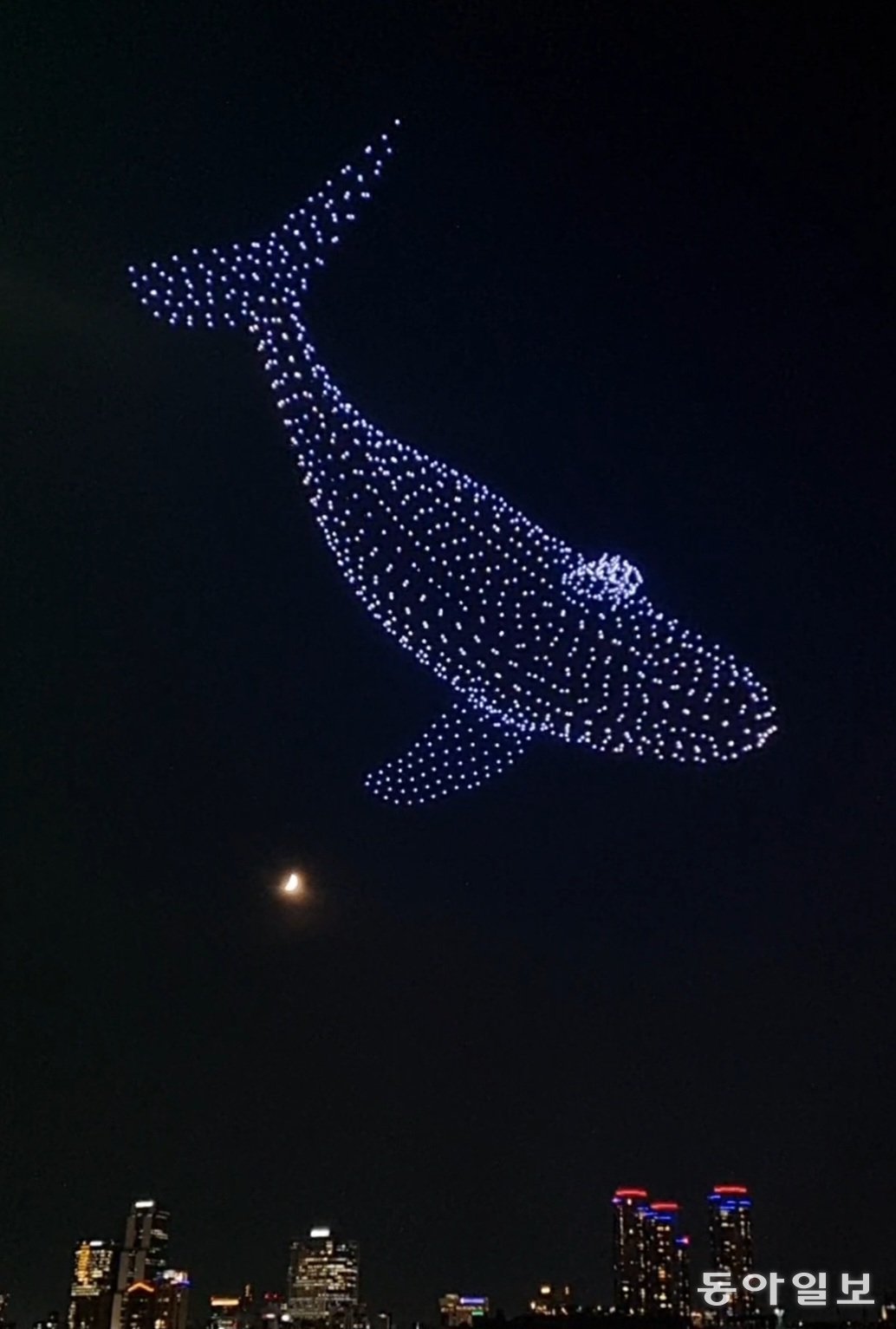 밤하늘에 별처럼 빛나는 고래 한 마리. 수백 개의 드론이 하늘을 날고 싶은 고래의 꿈을 이뤄줬네요.―서울 광진구 뚝섬한강공원에서이한결 기자 always@donga.com}