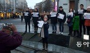 덴마크와 스웨덴, 영국 등 유럽 교민들이 14일(현지 시간) 덴마크 올보르 시내에서 정유라 씨의 조속한 송환과 구속 수사를 촉구하는 촛불집회를 열고 있다. 이들은 구치소를 한 바퀴 돌고 시내로 이동해 현지인들에게 영어로 정 씨 송환의 당위성을 호소했다. 올보르=조동주 특파원 djc@donga.com}