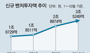 올해 1∼10월 벤처기업에 대한 신규 투자 액수가 사상 최대치를 나타냈다. 중소벤처기업부와 한국벤처캐피탈협회가 24일 발표한 ‘벤처투자 동향’에 따르면 올해 1∼10월 신규 벤처 투자액은 3조5249억 원이었다. 지난해 같은 기간보다 21.7% 증가한 것으로 지난해 연간 투자액인 3조4249억 원을 넘어섰다. 업종별로는 생명공학 관련 업종 투자액이 9841억 원으로 전체 투자액의 27.9%를 차지해 가장 비중이 컸다. 정보통신 업종이 25.2%(8889억 원)로 그 뒤를 이었고 유통·서비스 관련 투자가 7083억 원으로 20.1%였다. 업력별로는 창업한 지 3년 이상∼7년 미만인 스케일업 단계 투자가 40.4%(1조4255억 원)로 가장 많았고, 3년 이내 초기 단계 투자가 34.4%(1조2115억 원)를 차지했다. 1∼10월 벤처펀드 결성액은 2조6921억 원으로 지난해 같은 기간(2조6980억 원)과 비슷했다. 중기부는 “벤처기업에 대한 투자 열기가 지속되고 있어 현재 추세대로라면 올해 연간 벤처투자액은 사상 처음으로 4조 원을 넘어설 것으로 전망된다”고 밝혔다. 이새샘 기자 iamsam@donga.com}