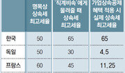#1. 1973년에 세워진 한국 기업 유니더스는 콘돔 분야에서 세계 시장 점유율 1위다. 2015년 말 창업주 고 김덕성 회장이 별세한 뒤 아들 김성훈 전 대표가 최대주주가 돼 기업을 이어받았다. 하지만 지난해 11월 유니더스 경영권은 사모펀드에 매각됐다. 약 50억 원에 달하는 상속세 부담 때문이었다. 직전까지도 김 전 대표는 세금 분할납부를 신청하며 경영 의지를 밝혔지만 결국 부담을 이기지 못해 회사를 팔았다. #2. 국내 광통신 소자 부문 1위였던 우리로광통신은 2013년 투자자문업체 인피온에 경영권이 팔렸다. 1998년에 회사를 세운 고 김국웅 창업주가 2013년 별세한 뒤 유족들에게 140억 원의 상속세가 부과됐기 때문이다. 세금 낼 돈을 마련하지 못한 유족들은 결국 회사 경영을 포기했다. 16일 한국경영자총협회는 ‘국제비교를 통해 본 우리나라 상속·증여세제 현황 및 개선방안’ 보고서를 냈다. 경총은 “가족에게 기업을 물려줄 경우 한국의 상속세 부담이 세계 최고 수준인 것으로 나타났다”고 밝혔다. 경총에 따르면 경제협력개발기구(OECD) 국가 중 직계비속에게 적용되는 상속세 최고세율은 한국(50%)이 일본(55%) 다음으로 높은 2위다. 보통 기업 상속은 주식을 자손에게 물려주는 형태로 이뤄지는데 이 경우 한국은 최대 30%의 할증이 적용된다. 이를 고려하면 실제 부담해야 하는 최고세율은 한국(65%)이 일본(55%)보다 높아진다. 프랑스는 실부담 세율이 11.25%, 독일은 4.5%, 벨기에는 3%에 불과하다. 선진국들은 기업 상속 시 부담해야 하는 세금을 적극적으로 줄여나가는 추세다. OECD 35개 회원국 중 호주, 캐나다, 뉴질랜드, 노르웨이 등 13개국은 직계비속(아들이나 딸)이 기업을 상속 받을 때 상속세를 안 낸다. 영국, 스페인 등 13개 국가는 세율은 낮춰주거나 큰 폭의 공제 혜택을 준다. 예를 들어 총 200억 원 규모의 기업을 배우자에게 90억 원, 아들에게 주식 100억 원, 딸에게 기타 자산 10억 원으로 나눠 물려준다고 하자. 한국은 총 27억9000만 원의 상속세를 내야 한다. 같은 상속이 독일에서 이뤄지면 상속세는 5억4000만 원, 영국은 2억1000만 원이다. 경총은 기업 상속에 적용되는 최고세율을 현재의 50%에서 절반인 25% 수준으로 낮춰야 한다고 강조했다. 자손이 가업을 이어 장기적으로 연구개발 역량을 높이고 회사를 키울 수 있는 환경을 만들어야 한다는 것이다. 한국은행에 따르면 2009년 기준으로 ‘200년 이상’ 역사를 지닌 장수기업이 일본에는 3113개, 독일에는 1563개가 있다. 특히 일본은 경쟁력 있는 부품소재 업체들이 100년 이상씩 존속하며 독보적인 기술력을 쌓고 있다. 1917년 설립된 일본 기코만 간장의 발효 기술은 미국항공우주국(NASA)에서 미생물 검사에도 쓰이고 있다. 경총은 “기업 승계는 단순한 부(富)의 이전이 아니라 일자리와 기술력의 이전이기 때문에 긍정적 효과를 고려해야 한다”고 강조했다.이은택 기자 nabi@donga.com}