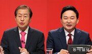 “대통령이 되면 핵 공유 혹은 전술핵 배치를 두고 협상하겠다.”(국민의힘 홍준표 의원) “절대 독불장군식으로 제멋대로 혼자 결정하지 마시라.”(원희룡 전 제주도지사) 22일 오후 서울 마포구 YTN뉴스퀘어에서 열린 국민의힘 대선 경선 2차 맞수토론에서 맞붙은 두 주자는 안보 정책을 놓고 이견을 드러냈다. 홍 후보가 지난 토론에 이어 “북한이 잠수함발사탄도미사일(SLBM)을 발사하며 미국의 ‘레드라인’을 넘었다”며 나토식 핵 공유를 거듭 강조하고 나서자 원 전 지사가 “홍 후보에 대해 국민이 걱정하는 게 바로 이런 지점”, “안보는 상황이 바뀌면 달라질 수 있다”고 응수한 것. 두 주자는 이날 목소리를 높이는 대신 “전적으로 동의한다”는 말을 여러 번 주고받는 정책 토론을 펼쳤다. 원 전 지사가 “‘부모 찬스’ 없는 청년이 꿈을 꿀 수 있는 나라가 돼야 한다”고 하자 홍 의원은 “원 후보나 저는 부모 찬스로 여기까지 온 건 아니죠”라고 화답했다. 이어 “누가 더 가난했을까”, “닮은 점이 많다”는 말을 주고받았다. 원 전 지사가 “홍 후보의 국가 비전이 무엇이냐”고 묻자 홍 의원은 “집권하면 선진국 시대의 원년을 만들고 싶다. 국회를 양원제로 바꾸고 대통령 중임제로 바꾸는 개헌을 하고 강성 노조와 규제를 철폐하고 싶다”고 했다. 이에 원 전 지사는 “전체 시스템을 선진국으로 바꾸겠다는 ‘가슴 뛰는 얘기’라며 큰 스케일을 나타내는 호방한 목표”라고 평가했다.장관석 기자 jks@donga.com}