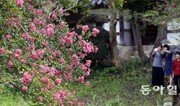 처서가 지나고 서서히 가을의 문턱으로 가고 있는 27일 광주 북구의 한 전통가옥에 연분홍 백일홍 꽃이 만개했다. 이곳을 찾은 시민들이 휴대전화로 기념사진을 찍고 있다. 박영철 기자 skyblue@donga.com}