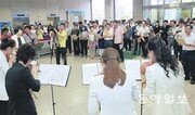 대학생들의 여름방학 기간에 줄어든 헌혈로 긴급용 혈액이 부족한 가운데 21일 광주 북구 보건소에서 을지훈련 기간을 이용해 공무원들과 주민들을 대상으로 헌혈 캠페인을 실시하고 있다. 박영철 기자 skyblue@donga.com}