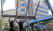 18일 광주 일곡지구 고려고등학교 앞 도로에서 비바람을 막아주는 시내버스 정류장 시설작업을 위해 구조물을 운반하고 있다. 박영철 기자 skyblue@donga.com}