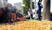 가을 햇살이 좋았던 22일 광주 북구 전남대 앞 도로변 은행나무 아래에서 북구 공무원들이 잘 익은 은행을 열심히 수확하고 있다. 광주 북구는 이 은행을 인근 복지단체에 기부하기로 했다. 광주=박영철 기자 skyblue@donga.com}