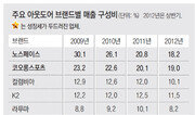 《 일명 ‘국민교복’ ‘등골브레이커(부모의 등골을 휘게 하는 옷)’ 등으로 불리며 중고교생들의 압도적인 지지를 받던 아웃도어 브랜드의 최강자 노스페이스가 흔들리고 있다. 노스페이스에 대한 공격은 크게 두 갈래다. 아이돌 톱스타를 기용해 인지도를 높인 후발 업체들의 공세와 하이엔드(Highend·최상류층을 겨냥한 고급 브랜드) 마케팅을 내세운 초고가 수입 브랜드들의 성장세가 겹쳤다. 노스페이스는 올 들어 처음으로 백화점 아웃도어 부문 1위에서 밀려났다. ‘노페(노스페이스)현상’이란 신조어까지 만들어내며 인기를 끌었지만 지난해 학교폭력의 주범으로 몰리는 등 역풍을 맞으면서 수요가 분산되고 있다는 분석도 나온다. 》○ 격변기에 접어든 아웃도어 시장 9일 본보가 입수한 롯데백화점 내부 자료에 따르면 전체 아웃도어 브랜드 매출에서 노스페이스의 비중은 2009년 30.1%에서 올해 상반기 18.2%로 떨어졌다. 이에 따라 매출 비중 순위도 바뀌었다. 최근 4년간 1위 자리를 놓치지 않았던 노스페이스는 올 들어 처음으로 코오롱스포츠(19.0%)에 선두를 내줬다. 상반기 신장률로 따져도 노스페이스는 8.6% 성장하는 데 그쳤다. 반면 경쟁 업체인 코오롱스포츠(17.1%)와 K2(14.3%) 등은 올 들어 10% 이상 성장세를 유지했다.노스페이스의 자리가 위태로워진 틈을 노려 2PM이나 소녀시대 윤아, 이민호 등 아이돌 스타를 모델로 기용해 ‘10대 마음잡기’에 적극 뛰어든 후발주자들의 성장세가 두드러졌다. 네파(321.0%)와 아이더(171.5%) 등이 100% 이상 큰 폭으로 성장했다. 또 기능성 아웃도어가 아니라 일상생활에서도 착용할 수 있는 ‘라이프스타일 아웃도어’를 표방한 에이글(45.7%) 등의 신장세도 눈에 띈다. 롯데백화점 아동·스포츠상품기획(MD) 1팀의 남동현 MD는 “노스페이스를 중심으로 한 아웃도어 ‘오강다중(五强多中)’ 체계가 최근 깨지며 시장이 재편되고 있다”며 “남들이 다 입는 옷 대신 차별화된 스타일을 원하는 수요자가 늘었기 때문”이라고 말했다. ○ ‘노페 현상’ 부작용? 스타 브랜드의 딜레마노스페이스가 압도적인 선두였던 아웃도어 브랜드 순위가 최근 흔들린 데는 ‘브랜드 갈아타기’ 움직임도 있다. 중고교생의 ‘노페 충성도’는 여전히 높은 편이지만 아이돌을 내세워 10대 마케팅 공세를 펼치는 후발 업체가 늘며 유행에 민감한 이들의 선호도가 분산되고 있다. 중고교생 사이에선 ‘(잘 모르는) 1학년은 노스페이스 입고 2학년은 네파를 입는다’는 말이 우스갯소리로 떠돈다. 아웃도어업계의 한 관계자는 “강남 학생들은 차별화되는 더 좋은 브랜드를 찾고 지방 학생들은 아이돌 스타가 등장하는 새로운 브랜드를 선택하는 식”이라고 말했다. 윤희수 네파 마케팅 팀장은 “노스페이스에서 옮겨 온 젊은층의 수요가 브랜드 신장세에 일부 영향을 미친 것으로 보고 있다”며 “새로운 브랜드로 옮겨 타는 이들을 붙들기 위한 업체별 경쟁도 치열하다”고 말했다. 노스페이스 브랜드가 ‘노스페이스 계급’ 등으로 희화화되면서 중년 고객들도 일부 빠져나갔다. ‘중고교생 일진이 입는 옷’을 입는 데 불편함을 느낀 중장년층이 상대적으로 기능성이 강조된 몽벨, 블랙야크 등을 택하거나 아예 남들과 다른 초고가 수입 브랜드를 선택하게 된다는 것이다. 중년층 사이의 입소문으로 빠른 성장세를 보이는 하이엔드 브랜드 아크테릭스, 몬츄라, 마무트 등이 대표적이다.김상훈 서울대 경영학과 교수는 “노스페이스처럼 특정 브랜드가 사회적 이슈에 얽히는 경우 톱 브랜드라는 점이 부각되는 것은 장점이지만 장기적으로 제품의 사용자 이미지가 선망의 대상이 아니라 문제가 있는 중고교생으로 고착된다는 점에선 득보다 실이 많다”고 지적했다. 노스페이스 측은 “다른 브랜드의 성장세가 두드려져 보이기는 하지만 전체 매출 규모로 보면 지난해와 비슷한 외형을 유지하고 있다”고 말했다. 하지만 최근 들어 학교폭력의 상징처럼 이해되거나 10대 편향적인 이미지가 생기는 것을 우려해 CF에서 기능성을 강조하고 있다고 소개했다.박선희 기자 teller@donga.com}