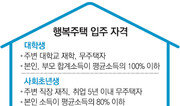 서울의 한 중소기업에 다니는 1년 차 직장인 A 씨(28)는 서울 구로구 오류동에 짓는 행복주택의 공고가 나오면 곧바로 입주를 신청할 생각이다. 광주 출신인 A 씨는 지난해 7월 정부가 예고한 ‘행복주택 입주 자격안’을 보고 한때 낙담했다. 아버지가 광주에 아파트를 갖고 있어 신청자격이 제한된다는 사실을 알았기 때문이다. 하지만 이달 1일 확정된 입주자격은 이보다 크게 완화돼 본인만 무주택자면 입주할 수 있게 된 것이다. A 씨는 “목돈이 없어 서울 친척집에 머물며 월세방을 알아보고 있었다”면서 “주변 시세보다 싼 행복주택에 입주하면 주거비 부담이 크게 줄어들 것”이라고 기대했다. 도심 내 서민임대주택인 행복주택의 기본 입주요건이 ‘무주택 가구주’에서 ‘무주택 가구원’으로 완화된다. 특히 부모가 다른 지역에 집을 갖고 있더라도 홀로 독립해 사는 무주택 사회초년생에게 행복주택 입주기회를 주기로 했다. 국토교통부는 이 같은 행복주택 입주 요건을 담은 ‘주택공급에 관한 규칙’을 2월 27일부터 시행한다고 1일 밝혔다. 행복주택은 주로 신혼부부, 대학생, 사회초년생 등을 위해 도심에 주변 시세보다 저렴하게 임대주택을 공급하는 박근혜 정부의 핵심 주거복지 사업이다. 확정된 요건에 따르면 무주택자라면 가구주가 아니어도 행복주택 입주를 신청할 수 있도록 자격요건이 완화됐다. 지난해 7월 예고한 안에서는 무주택인 가구주만 신청할 수 있었다. 이에 따라 5년 차 이내 신혼부부의 경우 남편이 행복주택이 들어서는 시군 또는 그와 맞닿은 시군의 직장에 재직 중인 무주택 가구주만 신청할 수 있었다. 완화된 안에 따르면 남편이 아니라 아내의 직장이 행복주택이 들어서는 시군 또는 그와 맞닿은 시군에 있어도 입주 신청을 할 수 있게 된 것이다. 특히 사회초년생의 무주택 기준이 대폭 완화돼 본인이 취업한 지 5년 이내 무주택자라면 입주 신청을 할 수 있게 된다. 기존에는 함께 살지 않는 부모가 집을 갖고 있으면 자녀는 행복주택 입주 대상에서 원천 배제됐다. 자녀가 부모와 떨어져 직장 주변에서 혼자 살 경우 ‘독립’으로 보고 무주택자로 인정해야 한다는 여론을 수용한 것이다. 행복주택 물량 가운데 80%는 도입 취지대로 대학생, 사회초년생, 신혼부부 등 젊은 계층에 공급된다. 나머지 20%는 취약계층과 노인에게 돌아간다. 산업단지에 공급하는 행복주택의 경우 산단 근로자에게 80%가 공급된다. 공급물량의 50%는 기초단체장이 우선 선정할 수 있으며 지방자치단체나 지방공사가 직접 사업을 시행할 경우 비율이 70%까지 확대된다. 신혼부부, 대학생, 사회초년생의 행복주택 거주 기간은 6년(2년마다 계약 갱신)으로 제한된다. 하지만 행복주택에 살던 대학생이 취업하거나 사회초년생이 결혼할 경우에는 최대 10년까지 살 수 있다. 노인이나 취약계층, 산단 근로자는 최장 20년까지 거주할 수 있다. 개정된 규칙은 올해 상반기(1∼6월)에 입주자를 모집하는 서울 송파구 삼전동지구와 서초구 내곡동지구 등부터 적용된다.홍수영 기자 gaea@donga.com}