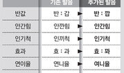 ‘효꽈(효과·效果)’ ‘관껀(관건·關鍵)’ ‘교꽈(교과·敎科)’의 된소리 발음이 표준 발음으로 새롭게 인정됐다. 국립국어원은 표준국어대사전 수정 내용 40건을 최근 발표했다. 이에 따르면 안간힘은 ‘안깐힘’ 말고도 ‘안간힘’이라고 읽어도 되고, 순이익은 ‘순니익’ 또는 ‘수니익’으로 읽어도 된다. ‘반값’은 ‘반갑’뿐 아니라 ‘반깝’으로 읽어도 되며, 성적을 나타내는 숫자 ‘점수(點數)’의 발음 역시 ‘점쑤’와 더불어 ‘점수’가 새로 인정됐다. 새로 사전에 오른 단어도 있다. ‘기다랗게 되다’라는 뜻의 ‘기다래지다’가 표준어로 이번에 인정됐고 접두사 ‘기(旣)’도 ‘그것이 이미 된’ ‘그것을 이미 한’이라는 뜻과 함께 표제어에 더해졌다. ‘기구축’ ‘기출석’과 같이 사용할 수 있다. ‘노랫말을 고치거나 다시 짓다’라는 뜻의 ‘개사(改詞)’도 사전에 등재됐다. 듣는 이를 부르는 말 ‘이보십시오’가 새로 사전에 오르면서 ‘이보세요’ ‘이보쇼’ ‘이보시게’ ‘이봐요’ 등도 함께 등재됐다. 미망인의 뜻풀이는 ‘아직 따라 죽지 못한 사람이란 뜻으로, 남편이 죽고 홀로 남은 여자를 이르는 말’에서 ‘남편을 여읜 여자’로 바뀌었다. “아직 따라 죽지 못한 사람이라는 뜻으로, 미망인이라고 부르는 것은 실례가 된다”는 각주가 달렸다. 널리 쓰이지만 아직 뜻풀이가 없던 말도 뜻이 추가됐다. ‘줄’ ‘줄을 대다’는 말에는 “자신에게 이익이 될 만한 사람과 관계를 맺다”라는 풀이가 더해졌다. “관리자에게 줄을 대어 승진을 하던 시대는 지났다”는 예시 문장도 실렸다. ‘올라오다’라는 단어에는 “컴퓨터 통신망이나 인터넷 게시판 따위에 글이 게시되다”라는 풀이가 추가됐고, ‘잎’에는 ‘꽃잎을 달리 이르는 말’이라는 뜻이 추가됐다. ‘잘생기다’ ‘못생기다’ ‘잘나다’ ‘못나다’ ‘낡다’ 등은 형용사에서 동사로 품사가 수정됐다. ‘잘생겼다’ 등이 과거가 아니라 현재 상태의 의미를 드러내기 때문이라고 국립국어원은 설명했다. ‘빠지다’ ‘생기다’ ‘터지다’도 보조 형용사에서 보조 동사가 됐다.조종엽 기자 jjj@donga.com}