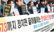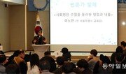 지난해 조국 전 법무부 장관의 퇴진을 요구했던 교수단체가 두 번째 시국선언에 나섰다. 이번 선언에는 법치, 경제, 안보, 교육 등 현 정권의 정책 전반에 대한 비판이 담겼다. ‘사회정의를 바라는 전국교수모임’(정교모)은 15일 서울 중구 한국프레스센터에서 기자회견을 열고 “여러 세대의 대한민국 정부와 국민이 힘을 합쳐 쌓아 올린 자유민주주의 체제와 경제, 외교, 국방, 민생, 교육 정책의 성과가 한꺼번에 무너져 내리고 있다”며 “한 번도 경험해보지 못한 거짓의 나라가 돼가고 있다”고 주장했다. 정교모는 이번 시국선언에 전현직 교수 6094명이 참여했다고 밝혔다. 정교모는 공동대표인 최원목 이화여대 법학전문대학원 교수가 낭독한 시국선언문을 통해 △권력기관 개혁을 원점에서 재검토할 것 △분배 위주의 경제 복지 정책을 전면 재조정할 것 △탈원전 정책을 폐기할 것 △외고·자사고 폐지 정책을 중단하고 좌편향 의식화 교육을 차단할 것 △외교·국방 정책을 전환하고 우방국과의 신뢰 관계를 회복할 것 △언론에 대한 정치권력의 개입을 처벌할 것 등을 요구했다. 6개 분야별로 참여 교수들의 발언도 이어졌다. 안보국방 분야의 조성환 경기대 정치전문대학원 교수는 “지난해 ‘조국 사태’로 드러났던 집권 세력의 거짓, 위선 및 기만은 헌정 질서의 유린으로 나타났다”면서 “연동형 비례대표제를 ‘선거개혁’으로, 공수처법을 ‘검찰개혁’으로 호도해 통과시킨 것은 최고 규범인 헌법을 마비시키는 ‘입법 쿠데타’였다”고 비판했다. 헌정법제 분야의 이호선 국민대 법학과 교수는 “편의적으로 잡아넣거나 봐주는 것이 제도적으로 보장된, 조국 일가의 합법적 피난처가 공수처”라고 주장했다. 교육사회문화 분야의 이제봉 울산대 교육학과 교수는 “학교가 전국교직원노동조합 교사에 의한 이념 교육의 장으로 변질돼 좌파 정치세력의 지지기반을 재생산하는 기지로 전락했는데도 교육 당국은 형식적 조사로 일관하고 있다”고 말했다. 시국선언이 끝난 뒤 일부 교수는 ‘헌정파괴 부정부패 문재인 정권, 가증스런 검찰 장악 온 국민이 분노한다’라고 쓴 플래카드를 들고 청와대 분수대 앞까지 행진을 했다. 1차 시국선언 당시 명단 공개를 둘러싸고 불투명하다는 지적을 받았던 정교모는 이날도 참여 교수 명단은 공개하지 않았다. 강동웅 기자 leper@donga.com}
