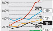 중국 한국 일본 인도 대만 등 아시아 주요 5개국의 국방비 지출이 최근 10년 동안 2배로 증가한 것으로 나타났다. 특히 중국의 국방비는 10년 동안 4배로 껑충 뛰었다. 미국 워싱턴의 싱크탱크인 국제전략문제연구소(CSIS)는 15일 보고서를 내고 아시아 주요 5개국의 국방비 지출은 지난해 2240억 달러로 10년 전인 2000년(1130억 달러)의 2배 가까이로 늘었다고 밝혔다. 이는 아시아 전체 국방비의 87%를 차지한다. 특히 중국의 공식 국방비는 2011년 899억 달러로 2000년의 225억 달러의 4배였으며 신형 무기 도입과 관련된 연구개발(R&D) 비용은 73억 달러에서 258억 달러로 증가했다. 5개국 전체 국방예산에서 중국이 차지하는 비중은 2000년 19.9%에서 지난해는 40.2%로 급증했다. 이 보고서는 “연구소가 인용한 수치는 중국이 발표한 공식 수치로 중국이 공식으로 밝히지 않은 부분까지 감안하면 이 비중은 60%에 이를 수도 있다”고 밝혔다. 실제로 스톡홀름 국제평화연구소는 중국의 2011년 국방예산을 1422억 달러로 추정했다. 중국은 2005년 국방비 지출에서 일본을 앞서기 시작했다. 전 세계에서 중국보다 국방비 지출이 많은 나라는 올해 6700억 달러를 사용한 미국밖에 없다. 일본은 2000년 400억 달러에서 2011년 582억 달러로 45.5% 늘었고 인도는 같은 기간 국방비가 47.6% 늘어 2011년에 370억 달러였다. 한국의 국방비는 2000년 170억 달러에서 지난해 290억 달러로 70.6% 늘었고 대만은 80억 달러에서 100억 달러로 증가했다. 군인 한 명에게 지출되는 비용(급여, 훈련비, 장비 구입비 등)은 일본이 23만8000달러로 가장 많았고 나머지 국가는 2만8000∼4만4000달러였다. 데이비드 버토 CSIS 국제안보프로그램 국장은 “아시아 지역의 국방비 지출 증가는 지난 10년간 한 해 평균 13.4% 늘린 중국의 군비확장 정책에 따른 것”이라고 말했다. 이 보고서는 유럽 국가들의 국방비 지출은 꾸준히 감소하고 병력도 눈에 띄게 줄어들어 올해 처음으로 아시아 국가들보다 적을 것으로 예상했다. 아시아 국가의 군비 지출은 최근 5년 동안 두드러지게 증가했으며 한국 일본 인도는 고성능 전투기 구입에 막대한 돈을 들이고 있는 것으로 나타났다. 가이 벤아리 CSIS 방위산업 분석가는 “아시아태평양 지역의 불확실한 안보 상황과 해상 영토 분쟁이 군사비 지출 증가를 가속화할 것”이라고 내다봤다.워싱턴=최영해 특파원 yhchoi65@donga.com 정미경 특파원 mickey@donga.com }