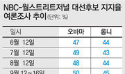 ‘집권 경험이 있는 버락 오바마 대통령에게 4년을 더 줄 것인가, 아니면 일자리를 만들 줄 아는 전직 최고경영자(CEO) 출신 밋 롬니 공화당 후보에게 기회를 줄 것인가.’ 대선을 보름여 앞둔 미국 유권자들의 고민이 깊어지고 있다. NBC방송과 월스트리트저널(WSJ)은 21일(현지 시간) 대선후보 2차 토론회(16일) 직후인 17일부터 20일까지 등록 유권자 가운데 투표할 생각이 있는 816명을 대상으로 여론조사를 한 결과 오바마 대통령과 롬니 후보가 47%로 동률을 나타냈다고 보도했다. 두 후보 간 예측을 불허하는 초박빙 승부가 이어지고 있는 것이다. 대선후보 토론회가 시작되기 전인 지난달 중순 실시된 같은 조사에서는 오바마의 지지율이 49%로 롬니(46%)보다 3%포인트 앞섰다. 하지만 1차(3일), 2차 토론을 거치면서 롬니의 상승세가 이어져 결국 무승부에 이른 것. NBC 척 토드 기자는 이날 ‘미트 더 프레스’ 프로그램에 출연해 “롬니가 스윙 스테이트(경합 주)에서 근소한 차로 오바마를 앞서고 있다”며 “전국 지지율 47%로 동률을 보인 것은 도전자에게는 좋은 것이지만 현직 대통령에겐 바람직한 뉴스가 아니다”라고 말했다. 하지만 등록 유권자 1000명 전체를 상대로 한 조사에서는 49% 대 44%로 오바마가 롬니를 5%포인트 앞섰다. 오바마는 흑인 유권자 92%의 지지를 받아 5%의 롬니를 압도했고 히스패닉계 10명 가운데 7명의 지지를 받았다. 여성도 52% 대 41%로 오바마를 지지했다. 18세 이상 34세 이하 젊은 유권자 층에서도 오바마(61%)가 롬니(33%)를 앞섰다. 롬니는 고령층에서 60% 지지를 받아 오바마(35%)를 크게 앞섰고 백인 55%의 지지를 받아 오바마(38%)를 앞질렀다. 남성은 롬니(47%)를 오바마(45%)보다 조금 더 선호했다. 두 후보에 대한 전통적인 지지성향이 뚜렷하게 나타난 것이다. ‘누가 대통령 직무를 잘 수행할 것이냐’는 질문에 대해 롬니는 47%로 9월 중순 조사보다 5%포인트 높아졌지만 오바마는 50%로 지난번 조사와 같았다. ‘군 최고통수권자로서 어떤 후보가 더 적합하느냐’는 질문에는 롬니(41%)가 오바마(44%)를 바짝 뒤쫓았다. 로이터와 여론조사기관 입소스의 20일 공동 여론조사에서는 오바마(46%)가 롬니(45%)를 근소한 차로 앞섰다. 폭스뉴스가 17, 18일 최대 격전지로 꼽히는 플로리다 주에서 실시한 여론조사에서는 롬니가 48%로 오바마(45%)를 앞섰다. 대표적인 경합 주인 오하이오 주에서는 오바마(46%)가 롬니(43%)를 3%포인트 앞서는 등 혼전 양상이다. 한편 미국인들의 존경을 받으며 ‘미국의 목사’로 불리는 빌리 그레이엄 목사는 22일 월스트리트저널, USA투데이 등 주요 일간지에 사실상 롬니에게 투표하라는 전면광고를 냈다. 큼지막한 사진으로 등장한 그레이엄 목사는 “이제 나는 94세 생일이 다가온다. 이번 선거가 마지막 선거가 될 듯싶다. 다음 달 6일 ‘결혼은 여성과 남성의 결합’이라는 성경의 가르침에 충실하고 이스라엘을 지지하는 후보에게 투표해 달라”고 호소했다.워싱턴=최영해 특파원 yhchoi65@donga.com 정미경 특파원 mickey@donga.com }