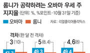 11월 6일 미국 대통령 선거에서 버락 오바마 대통령의 재선 가도에 빨간불이 켜졌다. 선거일을 10여 일 앞두고 밋 롬니 공화당 대선후보가 무서운 막판 상승세를 나타내고 있다.롬니 후보는 25일(현지 시간) 갤럽, 라스무센, 워싱턴포스트-ABC 여론조사 모두에서 지지율이 50%를 넘어서며 47%에 그친 오바마 대통령을 눌렀다. 이들 3개 여론조사는 미국에서 가장 신뢰도가 높다는 평가를 받고 있다. 이날 발표된 10개 여론조사에서 롬니 후보는 6개에서 우세를 보인 반면 오바마 대통령은 3개에서 앞섰고 1개는 동률이었다. 당일 발표된 여론조사들을 종합해 평균치를 내는 리얼클리어폴리틱스(RCP) 조사에서도 롬니 후보는 47.9% 대 47.0%로 오바마 대통령을 앞섰다. 이달 3일 1차 TV 대선 토론 후 상승세를 타기 시작한 롬니 후보의 지지율이 급상승하고 있는 것은 유권자들이 그의 경제 회복 능력에 더 높은 신뢰를 보내고 있기 때문이라고 전문가들은 분석했다. 선거 막판에 역전당한 오바마 대통령은 25일 하루 동안 무려 4개 주를 방문하는 등 막판 강행군 유세에 나섰다.워싱턴=정미경 특파원 mickey@donga.com}