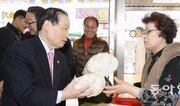 이경재 방송통신위원장(왼쪽)은 27일 설 명절을 앞두고 충북 음성군의 5일장인 음성시장을 찾았다. 이 위원장은 쌀과 과일 등을 직접 사면서 지역상인들의 애로사항을 청취했다. 그는 상인들에게 “훈훈하고 넉넉한 인심이 묻어나는 재래시장처럼 온 국민이 따뜻하게 소통하는 방송 통신 환경을 조성해 국민행복 시대를 열 수 있도록 최선을 다하겠다”고 말했다. 이 위원장은 전통시장 방문을 마친 후 시장 인근에 위치한 아동보호시설 향애원을 찾았다. 이 시설은 6·25전쟁 중이던 1952년 선교사가 전쟁고아를 위해 설립한 곳으로 현재 60여 명의 원생이 생활하고 있다. 이 위원장은 전통시장에서 구입한 쌀과 과일 등을 전달한 뒤 원생들을 격려했다.장원재 기자 peacechaos@donga.com}