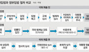 동아일보가 전국경제인연합회에 의뢰해 조사한 결과 경제 관련 상임위원회 소속 국회의원들이 발의한 경제 법안 중 규제를 만들거나 강화하는 법안의 비율은 56.6%로 정부 발의 법안(47.1%)보다 높았다. 국회의원들이 발의한 법안은 16대 1912건, 17대 6387건, 18대 1만2220건 등으로 급증하고 있다. 19대는 임기가 아직 절반도 안 지났지만 이미 8000건을 넘었다. 이 때문에 재계에서는 “국회가 규제 양산의 주범”이라는 볼멘소리가 나온다. 규제를 강화하는 의원입법이 남발되는 것은 정부입법과 달리 발의 절차가 간단한 데다 규제개혁위원회의 규제영향평가를 거치지 않아도 되기 때문이다. 이 때문에 정부 부처가 규제심사를 피하기 위해 국회의원을 통해 정부 법안을 발의하는 이른바 ‘청부입법’도 성행하는 실정이다. 김현종 한국경제연구원 기업정책연구실장은 “산업계에 상당한 파급효과를 낼 수 있는 정부 법안 상당수는 규제심사를 거치지 않고 의원입법 형식으로 발의된다”며 “이런 법안이 여야의 정치적 거래를 통해 제대로 된 심사도 없이 통과되는 일이 종종 있다”고 지적했다. 새누리당 이한구 의원 등은 지난해 9월 이런 현실을 개선하기 위해 국회의원들이 규제가 포함된 법안을 발의할 때는 규제사전검토서를 의무적으로 작성해 제출하고 상임위에서 규제영향평가를 받도록 하는 국회법 개정안을 국회에 제출했다. 하지만 자신들의 권한에 제약이 가해지는 것을 달가워하지 않는 의원들의 비협조적인 태도로 아직까지 제대로 논의되지 않고 있다.장원재 기자 peacechaos@donga.com}