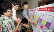 20일 광주시청 대회의실에서 적십자 및 사회단체 회원들이 자원봉사하며 얻은 경험과 기회를 공유하여 더 많은 이웃들에게 봉사활동의 기회를 나누기 위한 나눔강연회가 열렸다. 참가자들이 강연장 입구에서 희망메시지를 적어 나눔의 기쁨을 알리고 있다. 박영철 기자 skyblue@donga.com}