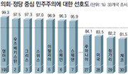 한국인들은 의회·정당 중심의 민주주의에 대해 세계에서 가장 부정적으로 인식하는 것으로 나타났다. 또 노인의 사회적 위상에 대한 인식이 세계 최하위권으로 조사됐다. 이는 2010∼2012년 ‘세계 가치관 조사(World Values Survey)’에서 나타난 결과이다. 이 조사는 5년 단위로 실시되며, 한국인에 대한 조사는 동아일보 부설 화정평화재단 21세기평화연구소가 한국사회과학데이터센터에 의뢰해 이뤄졌다. 국가별 정서와 특성을 고려해 설문조사를 했기 때문에 조사 대상국 수는 각 문항에 따라 12∼34개국, 응답자 수는 1만6962∼5만3718명으로 차이가 난다. 먼저 ‘의회와 정당이 중심이 되는 민주주의’에 대한 선호도를 물은 결과 한국인은 ‘좋다’는 응답이 77.4%로 나타나 조사 대상 33개국 중 가장 낮았다. 전 세계적으로 ‘좋다’는 응답의 평균은 89.2%였고 가장 높은 덴마크는 99.3%에 달했다. ‘의회(국회)를 불신한다’고 응답한 한국인의 비율은 73.4%였다. 반면 ‘의회와 선거에 개의치 않는 강한 지도자가 나라를 이끈다’는 문항에 한국인이 찬성한 비율은 48.6%로 33개국 중 10번째로 높았다. 다만 ‘민주주의 사회에서 사는 것이 중요하다’는 항목에서 한국인은 88.6%가 ‘중요하다’고 답해 전 세계 평균(83.3%)보다 높은 것으로 조사됐다. 어수영 이화여대 명예교수(정치학)는 13일 “한국인들은 민주주의 정치가 바람직하다고 생각하면서도 민주주의를 운영하는 핵심인 의회와 정당에 대한 불신 때문에 의회·정당 중심의 민주주의 정치에 높은 지지를 보내지 않았다”고 분석했다. 또 한국사회는 노인 공경을 중요한 덕목으로 내세우고 있지만 현실에서 노인이 제대로 대접받지 못하고 있다고 인식하는 것으로 나타났다. ‘노인들이 존경받지 못한다’는 항목에 한국인의 81.1%가 ‘그렇다’고 답해 조사 대상 13개국 중 가장 높았다. ‘다른 사람들이 70대 이상 노인들을 존경스럽다고 생각할 것이다’라는 문항에 47.0%만 ‘그렇다’고 답해 13개국 중 12위였다. 아울러 세계인들의 평균 이념 성향을 10점 척도(낮을수록 좌파적)로 조사한 결과 평균 5.52점으로 나타나 5년 전(5.76점)과 비교할 때 약간 ‘좌클릭’한 것으로 나타났다. 한국도 5년 전 평균 5.78점에서 이번에는 5.34점으로, 중도보수에서도 약간 좌클릭했다. 이남영 세종대 정책과학대학원 교수(한국사회과학데이터센터 소장)는 “유럽의 금융위기와 세계적 불황, 아랍권의 정치경제적 혼란 등으로 인한 저소득층의 생활 고충이 반영된 것 같다”고 설명했다. 장택동 기자 will71@donga.com 홍수영 기자 gaea@donga.com }