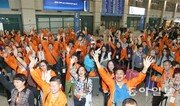 총 7000여 명으로 이뤄진 대규모 중국 인센티브 관광단이 5일 입국했다. 5일과 9일 두 차례에 나눠 입국하는 중국난징중마이커지유한공사(이하 중마이그룹)의 1차 방문단 3500여 명은 이날 인천국제공항을 통해 한국 땅을 밟았다. 중마이그룹은 1993년 중국 난징에서 설립된 건강·보건식품 판매업체로 2013년 크루즈 관광으로 서울과 제주를 방문한 적이 있다. 중마이그룹의 이번 방한은 항공편으로 입국한 단체관광단으로는 2011년 중국 바오젠그룹(1만860명) 이후 최대 규모다. 이들을 실어 나르는 한국행 비행기는 총 60대에 이른다. 한국에 머무는 동안 서울시내 호텔 16곳에 묵을 예정이다. 한국관광공사는 이들의 방문을 통해 495억 원의 직간접적 파급 효과가 발생할 것으로 보고 있다. 중마이 관광단은 4박 5일 일정으로 서울과 경기 일대를 둘러볼 예정이다. 방한 이틀째인 6일 저녁에는 서울 반포 한강시민공원에서 서울시와 농림축산식품부가 마련한 삼계탕 파티를 즐긴다. 삼계탕 4000인분과 함께 캔맥주, 탄산음료, 홍삼 드링크가 4000개씩 준비될 예정이다. 삼계탕에 들어가는 닭은 한국육계협회 소속 5개 업체가 협찬한다. 이 자리에서는 한류 드라마 ‘태양의 후예’의 배경음악을 부른 가수 거미, 케이윌, 린 등이 참여하는 콘서트도 열린다. 이에 앞서 관광단은 경기 용인시 에버랜드의 ‘판다월드’를 방문해 3월 중국을 떠나 한국에 새 보금자리를 마련한 판다 아이바오(암컷)와 러바오(수컷)를 관람할 예정이다. 이 판다 한 쌍은 3월 시진핑(習近平) 중국 국가주석이 한국에 선물한 것으로 양국 우호의 상징으로 여겨진다. 이 밖에 관광단은 여행 일정 동안 경기 파주시 임진각과 서울 경복궁, 명동, 동대문 등을 둘러볼 예정이다.최고야 기자 best@donga.com}