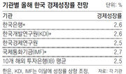 국책 연구기관인 한국개발연구원(KDI)이 올해 경제성장률 전망치를 기존 2.4%에서 2.6%로 상향 조정했다. 국제통화기금(IMF)도 ‘세계경제전망’ 보고서에서 올해 한국의 경제성장률 전망치를 2.6%에서 2.7%로 올려 잡는 등 주요 기관들이 잇따라 향후 경기에 대한 낙관적 시각을 내비치고 있다. KDI는 18일 발표한 ‘경제전망’에서 올해 성장률 전망치를 이같이 밝혔다. 지난해 12월과 비교해 0.2%포인트 높은 수준이고, 한국은행이 최근 올려 잡은 성장률 전망치(2.6%)와 같은 수준이다. 정규철 KDI 연구위원은 “수출이 예상보다 많이 늘었고 건설투자를 중심으로 투자 전반도 좋아지고 있다”고 설명했다. 하지만 성장률 상향 조정이 경기 회복을 의미하는 건 아니라고 선을 그었다. 정 연구위원은 “경기가 급락할 가능성이 낮아졌다는 것이지, 경기가 치고 올라갈 모멘텀이 커졌다는 건 아니다”라고 밝혔다. 다음 달 10일 들어설 새 정부가 추가경정예산(추경)을 편성하는 것에 대해서는 다소 부정적인 견해를 밝혔다. 추경은 경기의 급격한 하강을 막기 위한 정책적 수단이라 경기 회복기에 편성하는 것은 효과가 제한적일 수 있다는 것이다. IMF도 이날 발표한 세계경제전망 보고서에서 한국의 경제성장률을 기존 전망치보다 0.1%포인트 상향 조정했다. 세계 경제가 완만하게 성장세를 나타내고 있고, 한국에서는 수출 등 주요 경제지표들이 나아지고 있는 게 종합적으로 반영됐다. IMF는 올해 세계 경제성장률 전망치도 석 달 전에 내놓은 수치보다 0.1%포인트 올렸다.세종=박희창 기자 ramblas@donga.com}