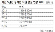 지난해 공기업 직원의 평균 연봉이 5년 만에 가장 크게 늘어난 것으로 나타났다. 공기업 직원의 연봉은 대기업 근로자들의 평균 임금보다도 많이 올랐다. 공기업들이 저유가 등 ‘외부 요인’으로 늘어난 이익을 가지고 직원들의 복리후생만 챙긴 게 아니냐는 비판이 나온다. 1일 공공기관 경영정보 시스템 알리오()에 따르면 한국전력, 한국가스공사 등 35개 공기업 직원의 지난해 평균 연봉은 7905만 원으로 집계됐다. 이는 2015년(7535만9000원)보다 4.9% 늘어난 규모로 최근 5년 중 상승폭이 가장 높았다. 공기업 직원의 평균 연봉 인상률은 2년 연속 4%대를 보이고 있다. 300인 이상 대기업 근로자의 임금 상승률이 2015년과 2016년 각각 3.9%, 2.3%에 그친 것과 비교된다. 기획재정부 관계자는 “지난해 공공기관 직원의 처우를 개선하기 위해 임금을 3% 인상해주기로 한 데다 2015년 경영실적 평가에서 공기업들이 예년에 비해 평가를 잘 받아 성과급이 더 많이 지급됐다”고 설명했다. 하지만 당기순이익만 보면 2015년에 공기업 당기순이익은 4조6000억 원으로 전년보다 0.6% 늘어나는 데 그쳤다. 최배근 건국대 교수는 “연봉 등 늘어난 금액의 근거들을 구체적으로 살펴봐야 할 것”이라고 지적했다. 이어 “지난해 3분기까지 전체 가계의 80%가 실질소득이 감소한 상황에서 독점 사업을 하는 공기업들의 임금 상승률이 대기업보다 높다는 것은 국민들의 공감대를 얻기 힘들다”고 덧붙였다. 한편 공기업을 포함한 전체 공공기관(332곳) 직원의 평균 연봉은 6607만 원으로 전년(6493만 원)보다 1.8% 올랐다. 한국예탁결제원(1억919만 원), 한국투자공사(1억712만 원) 등 두 곳은 평균 연봉이 1억 원을 넘었다. 공공기관들의 복리후생비는 8026억 원으로 2015년(7853억 원)보다 2.2% 늘어난 것으로 나타났다. 공공기관 지방 이전으로 보육시설을 늘리면서 보육비 지원액(417억 원)이 1년 전보다 38.3% 증가한 영향이 컸다. 신입사원 초봉은 한국과학기술정보연구원이 5639만 원으로 가장 높았다. KAIST(4941만 원), 대구경북과학기술원(4935만 원) 등 박사급 연구진이 많은 기관들이 상위권을 차지했다. 기관장 연봉에선 강성모 KAIST 전 총장이 4억108만 원으로 2년 연속 1위를 지켰다.세종=박희창 기자 ramblas@donga.com}