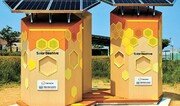 한화그룹이 ‘유엔 세계 꿀벌의 날’(5월 20일)을 맞아 태양광 전력을 활용한 탄소저감 벌집 ‘솔라비하이브’(사진)를 공개했다. 19일 한화는 국립 한국농수산대와 솔라비하이브 설치를 위한 업무협약(MOU)을 11일 맺었다고 밝혔다. 한화가 전북 전주시 한국농수산대 캠퍼스에 시범 설치한 솔라비하이브에는 약 4만 마리의 꿀벌이 살고 있다. 이 꿀벌은 캠퍼스 내 과일나무 등의 수분(受粉)을 돕는다. 솔라비하이브는 꿀벌의 생육 및 활동 데이터를 측정할 수 있는 스마트 시스템을 갖추고 있다. 스마트 시스템과 생육환경 조절이 가능한 벌통 등은 솔라비하이브 상단에 설치한 태양광 모듈에서 생산한 전력으로 작동한다. 그 밖에도 꿀벌의 천적인 말벌의 소리를 측정해 말벌이 접근하면 입구를 꿀벌만 통과할 수 있도록 작게 만드는 기능 등을 탑재했다. 홍석호 기자 will@donga.com}