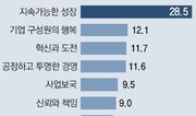최태원 대한상공회의소 회장을 비롯한 국내 5대 그룹과 유니콘 기업이 추진 중인 ‘신(新)기업가정신 선언’에 74개 기업이 동참한다. 22일 대한상공회의소는 5대 실천 명제를 담은 기업 선언문에 삼성전자, SK수펙스추구협의회, 현대자동차, LG, 롯데지주, 포스코, 한화 등 대기업과 우아한형제들, 쿠팡, 컬리, 비바리퍼블리카, 소카, 직방 등 유니콘기업 등 74개 기업이 서명했다고 밝혔다. 미래에셋증권, IBK기업은행 등 금융사 7곳이 참여했고, 외국계 기업에선 구글코리아가 이름을 올렸다. 이들 기업은 24일 서울 중구 대한상의회관에서 진행되는 신기업가정신 선포식에서 선언문을 발표할 예정이다. 선언문에는 ‘좋은 일자리 창출’ ‘조직 구성원이 보람을 느낄 수 있는 기업문화 조성’ ‘지역사회와 함께 성장’ 등 실천 명제가 포함됐다. 선포식에는 정의선 현대차그룹 회장, 손경식 한국경영자총협회 회장, 김슬아 컬리 대표의 축사와 최 회장의 강연이 예정돼 있다. 이들 기업은 신기업가정신 선포 이후 ‘신기업가정신협의회(ERT)’ 발족에 나선다. ERT는 미국 대표 경제협의체 ‘비즈니스라운드테이블(BRT)’를 벤치마킹한 별도 실천기구다. 앞서 대한상의가 기업인을 포함한 국민 706명을 대상으로 ‘시대가 요구하는 기업가정신은 무엇인가’라는 설문조사를 진행한 결과 응답자의 28.5%가 ‘지속가능한 성장’이라고 답했다. ‘기업 구성원의 행복’(12.1%) ‘혁신과 도전’(11.7%) ‘공정하고 투명한 경영’(11.6%) 등이 뒤를 이었다. 기업이 직접 나서서 추진해야 할 실천과제로는 행복한 근무환경 등 ‘기업문화 향상’(29.6%)이 가장 많이 꼽혔다.홍석호 기자 will@donga.com}