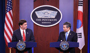 마크 에스퍼 미국 국방장관은 6일(현지 시간) 정경두 국방장관과 전화통화를 하고 공정한 방위비 분담의 중요성을 논의했다고 밝혔다. 에스퍼 장관은 이날 트위터에서 “정 장관이 오늘 동맹에서의 공정한 방위비 분담의 중요성을 논의하기 위해 내 전화를 받아준 것에 감사한다”며 통화 사실을 공개했다. 그는 “공정하고 균형 잡히고 포괄적인 합의에 신속히 서명하는 것이 대단히 중요하다”고 덧붙였다. 이와 함께 트위터에서 자주 사용하는 ‘같이 갑시다’를 알파벳으로 표시한 해시태그(#KachiKapshida)를 달았다. 그는 정 장관에게 미국 내 분담금 협상안 처리 상황을 설명하며 마지막까지 한국 측을 압박하려 한 것으로 보인다. 에스퍼 장관은 지난달 31일 마이크 폼페이오 국무장관과 함께 한미 양국 협상 실무팀이 마련한 방위비 분담금 협정(SMA)의 잠정 합의안을 도널드 트럼프 대통령에게 올렸다. 한 때 최종 타결 기대감이 높아졌지만 이후 트럼프 대통령의 최종 재가가 나지 않고 있다. 최근 미측의 입장이 “아직 협상 진행 중”으로 미묘하게 바뀌었고 트럼프 대통령의 승인이 지연되면서 가까스로 조율됐던 안이 다시 후퇴하는 게 아니냐는 관측도 나오는 상황이다.워싱턴=이정은 특파원 lightee@donga.com}